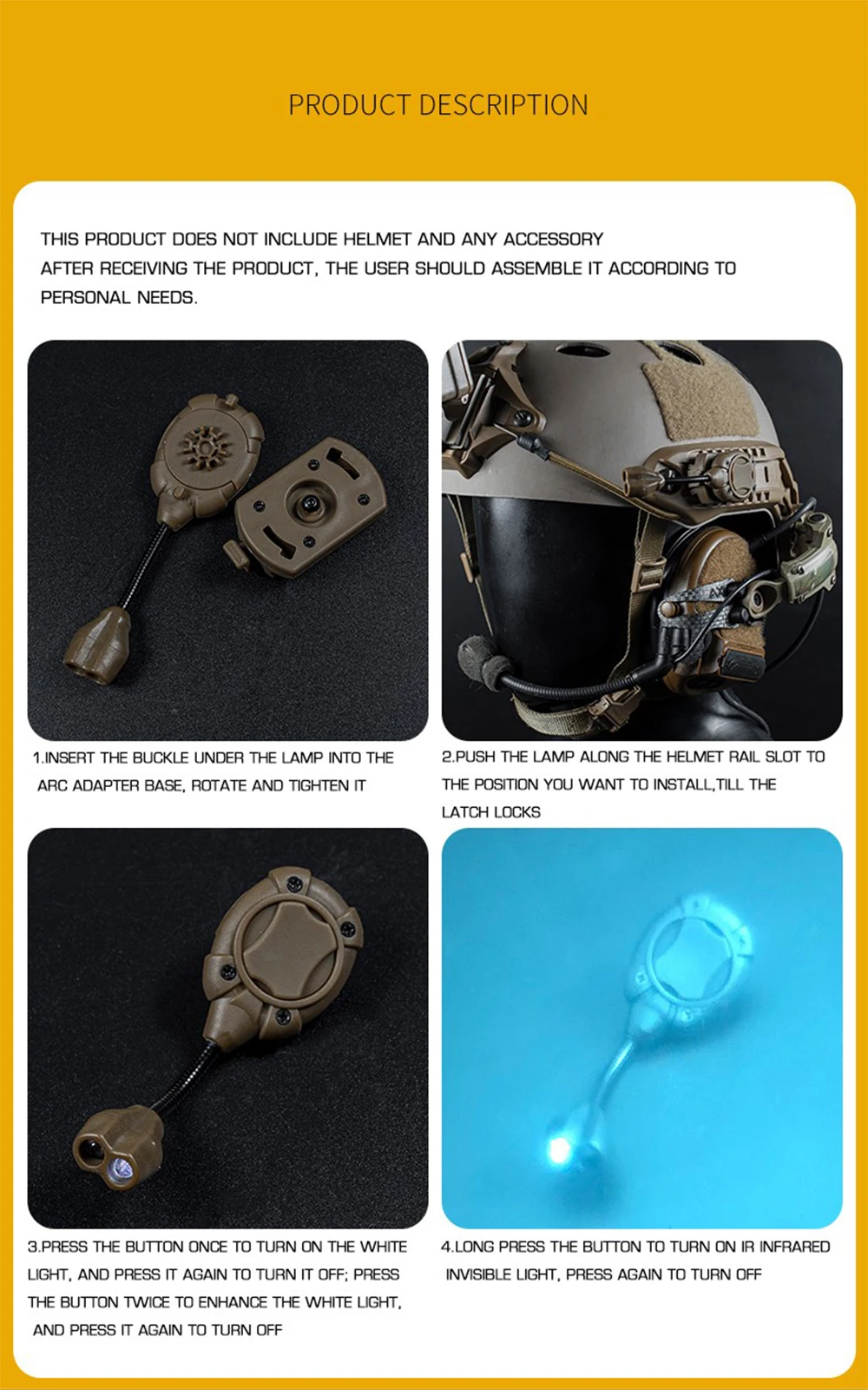 El paquete incluye: 1 Uds. Luz para casco (No incluya otros artículos)
