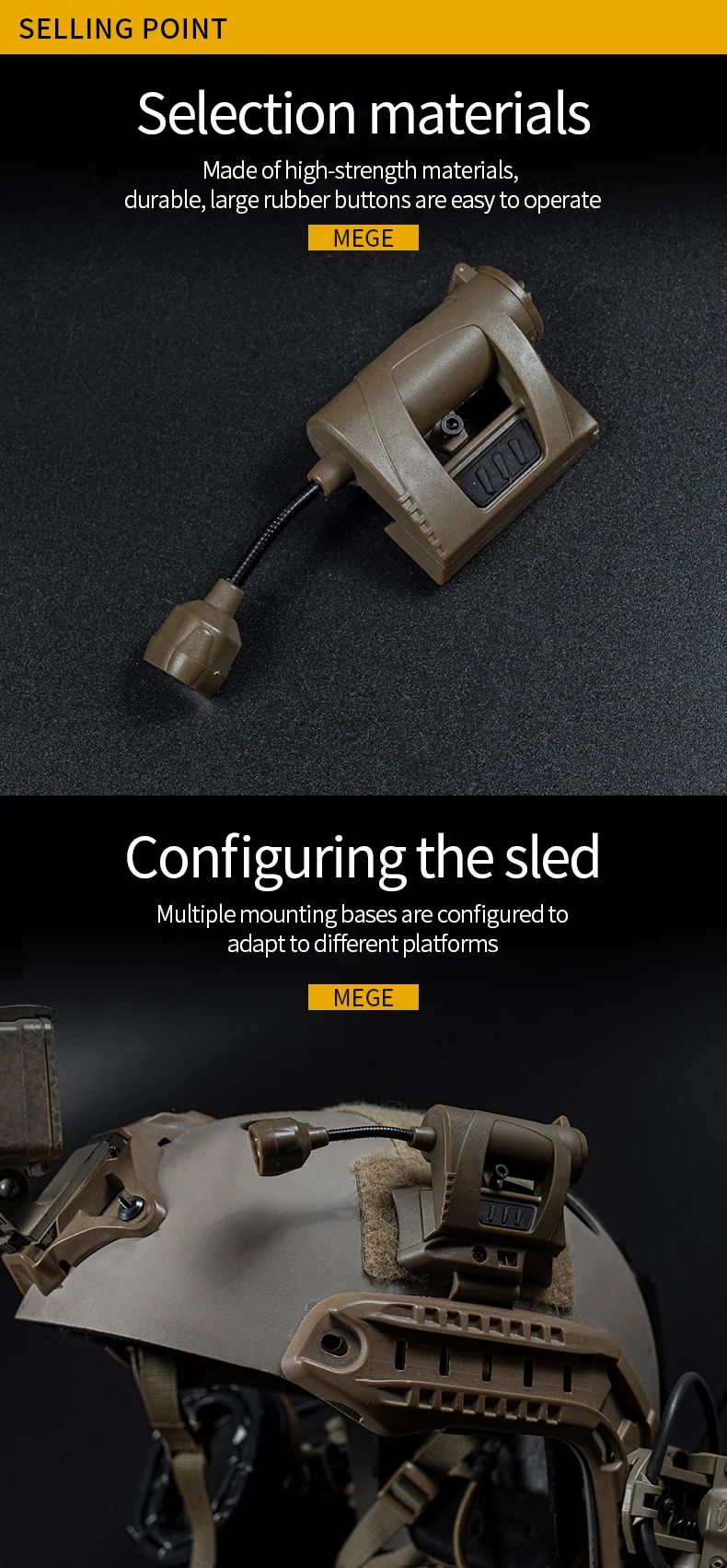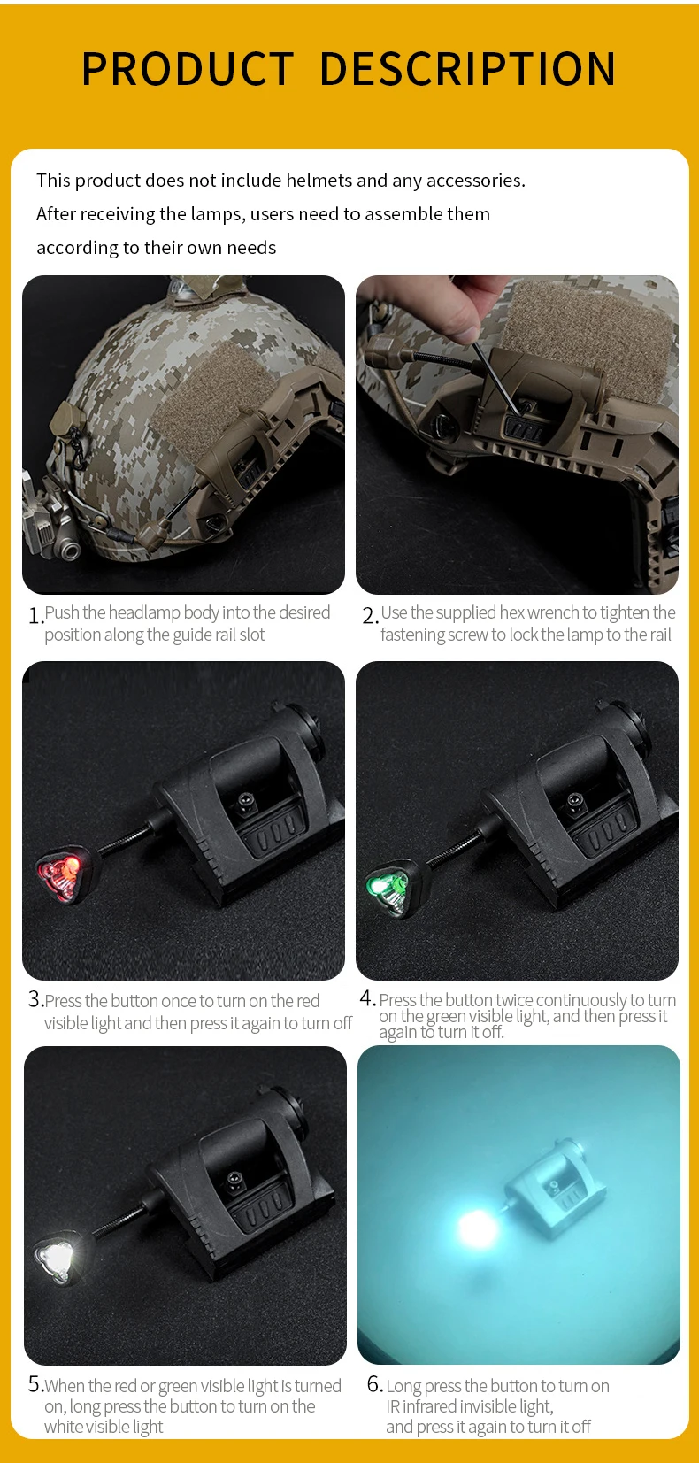 Luz táctica para casco, interruptor MPLS, 3 modos, Base de configuración LED, ahorro de energía, caza, supervivencia, linterna para casco militar