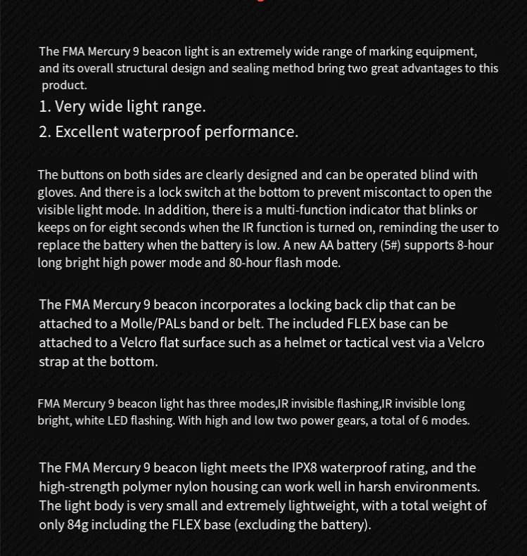 Luz táctica para casco, luz de baliza mercury 9, luz de señal intermitente, marca de luz larga, IPX8, función IR impermeable TB1473