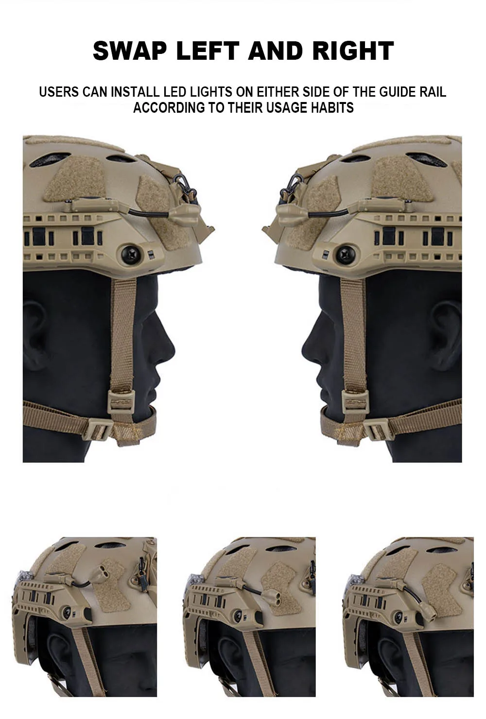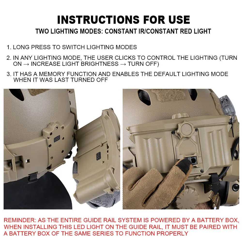 Luz táctica para casco para montaje en riel de arco modular IR/linterna LED roja caza al aire libre Camping accesorios de casco rápido de emergencia