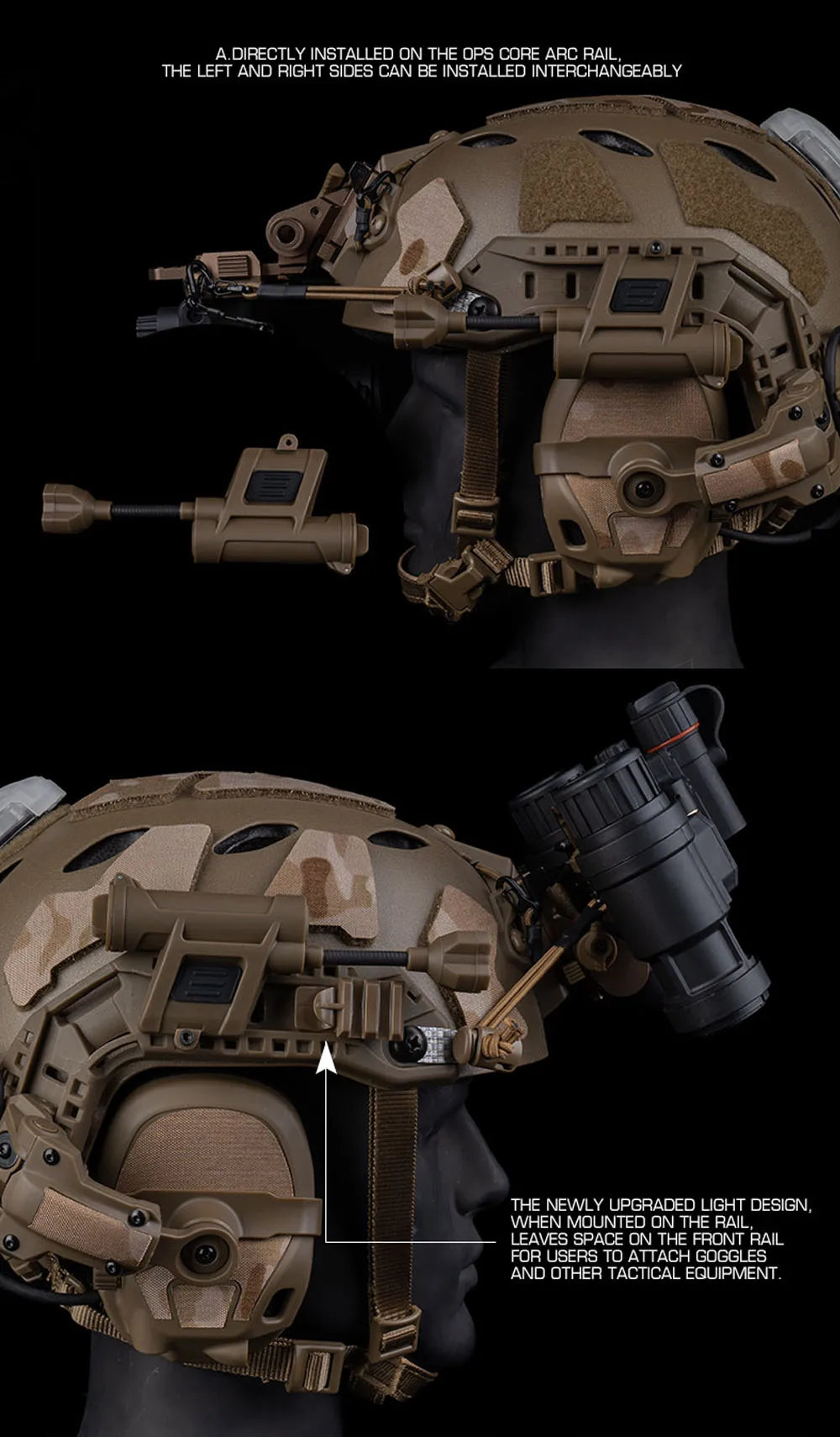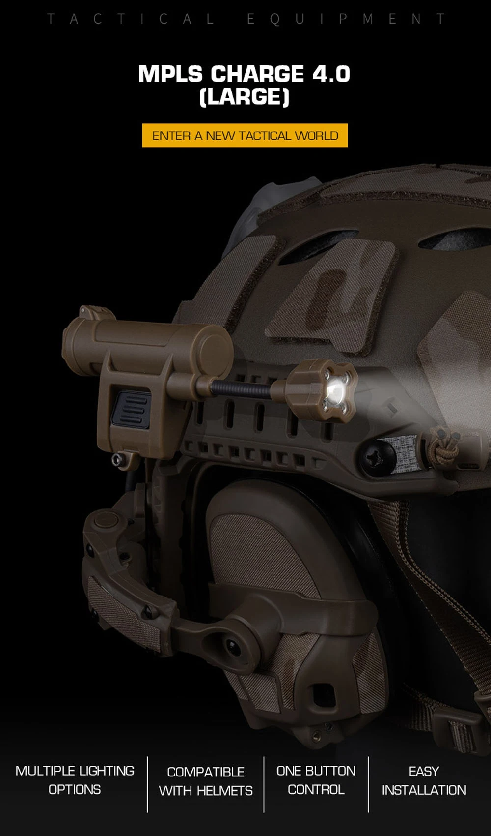 Luz táctica para casco, carga MPLS de 4a generación, 5 modos, rojo/verde/azul/blanco/luz IR IFF, linterna de pesca para senderismo al aire libre
