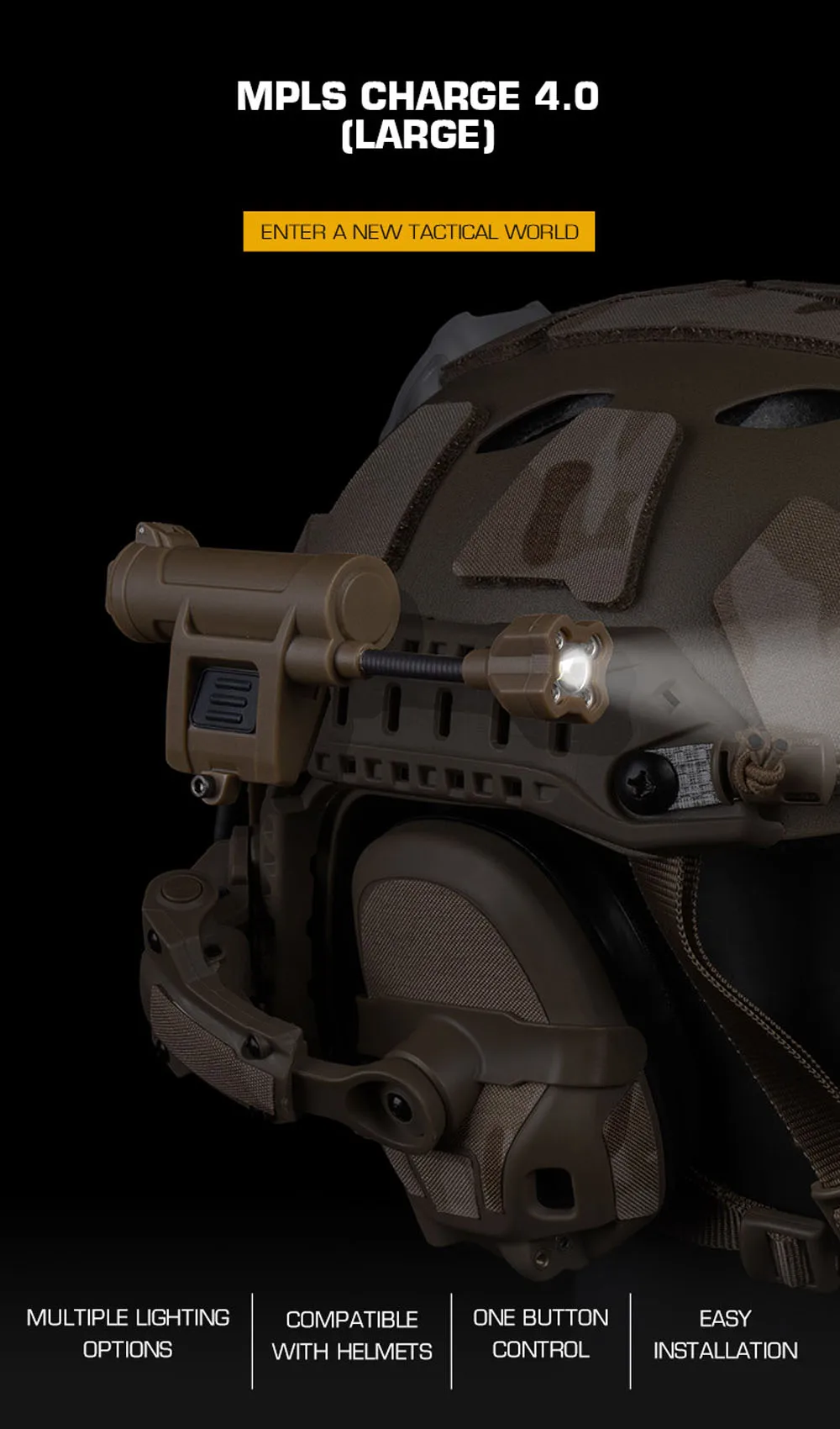 Luz táctica para casco MPLS CHARGE 4,0 caza al aire libre Camping linterna LED CS Airsoft juego IFF lámpara estroboscópica equipo para casco de ciclismo