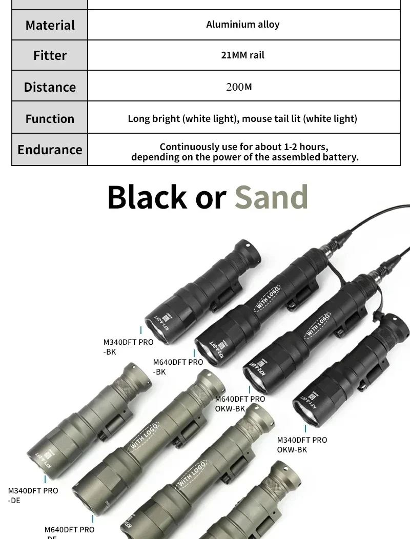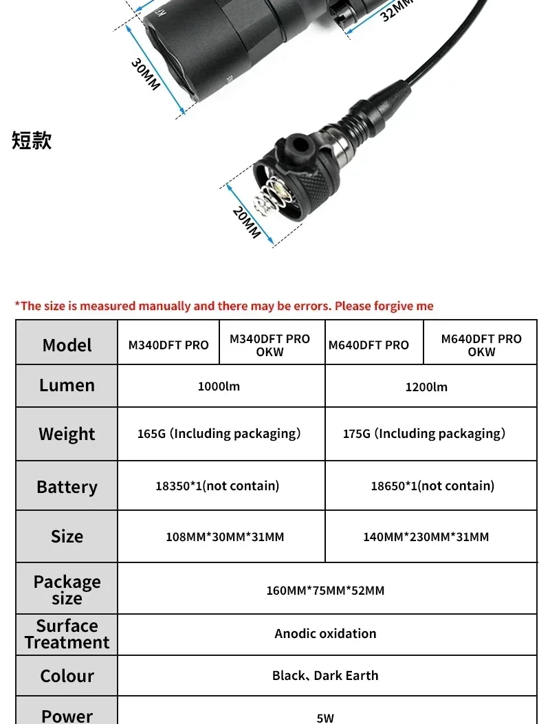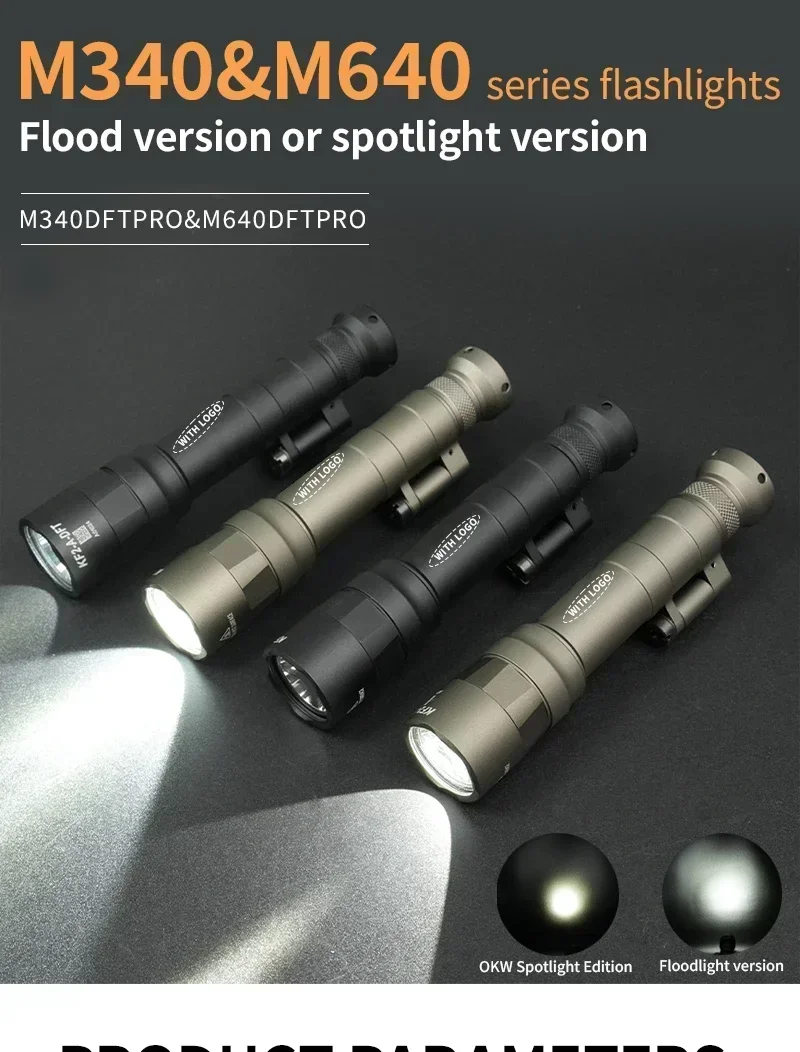 Luz táctica M640DFT M340DFT para exteriores, linterna para Rifle Airsoft, luz LED para arma, foco apto para riel de 20mm, accesorio de caza
