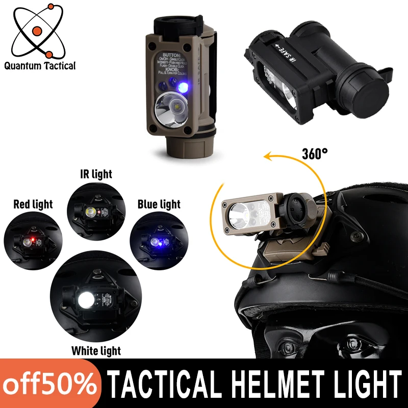 Luz Táctica WADSN para Cascos FAST - 4 Modos (Blanco/Rojo/Azul/IR) con Estrobo - Linterna para Caza y Actividades al Aire Libre - Accesorio para Cascos