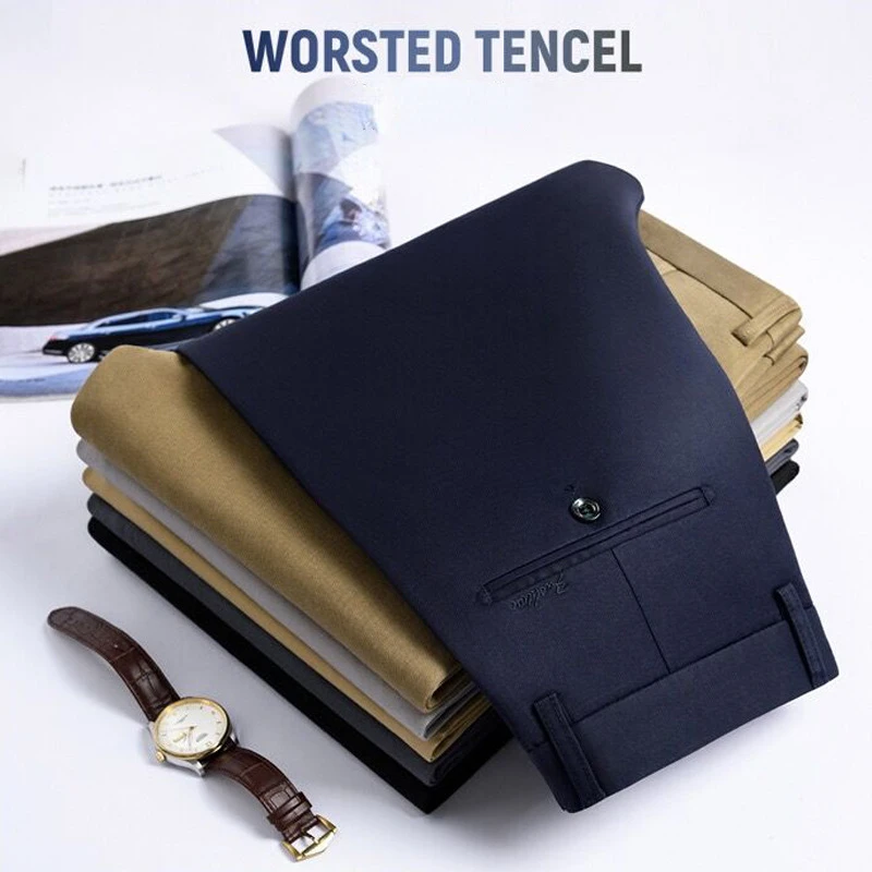 Lyocell-Pantalones de algodón para hombre, Pantalones masculinos de corte Regular, elásticos, rectos, resistentes al desgaste, a la moda, nuevos