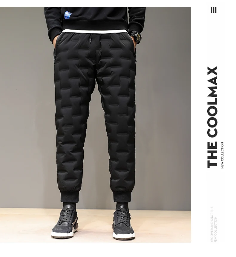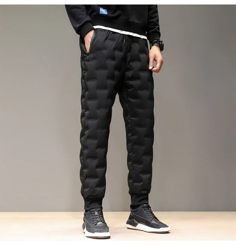 M-5XL-pantalones de plumón de pato blanco 80% para hombre, ropa gruesa sólida, resistente al viento, cálido, relleno de plumón de pato, senderismo, acampada, senderismo, Invierno