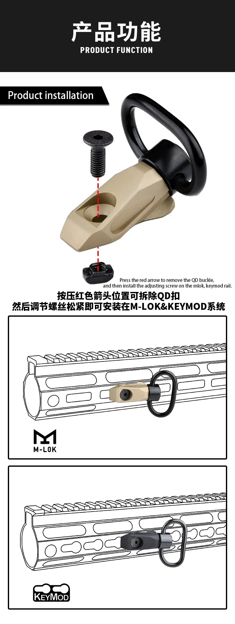 Montaje de eslinga en ángulo SI QD táctico, base Keymod Qd, hebilla de liberación rápida, adaptador de eslingas WADSN, accesorios de caza