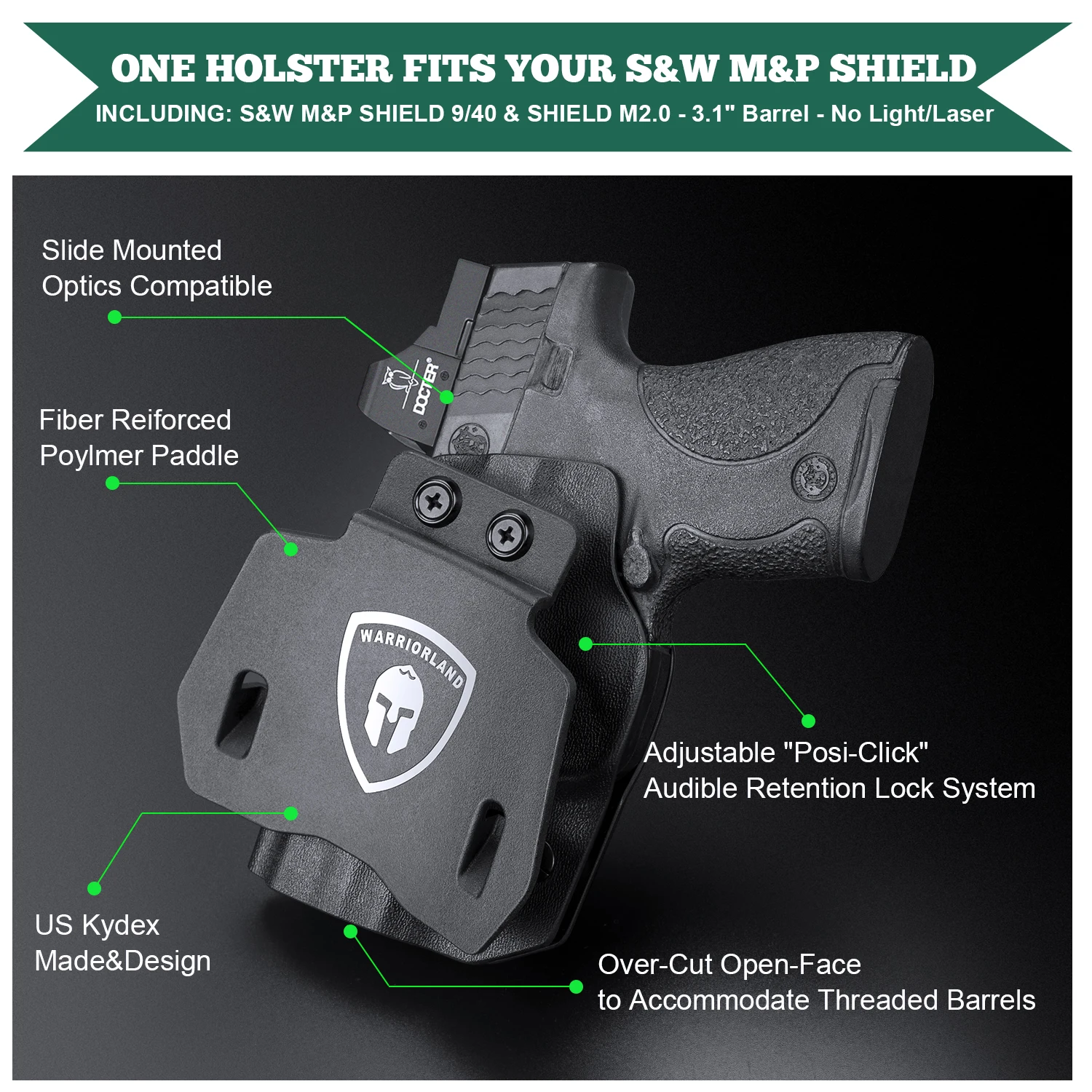 【Sistema de bloqueo de retención Audible posi-click, se ajusta como una Glove】 la funda OWB M & P Shield 9/.40 posee sistema de bloqueo de retención Audible posi-click, escuchará un sonido de "clic" cuando su pistola esté firmemente sentada