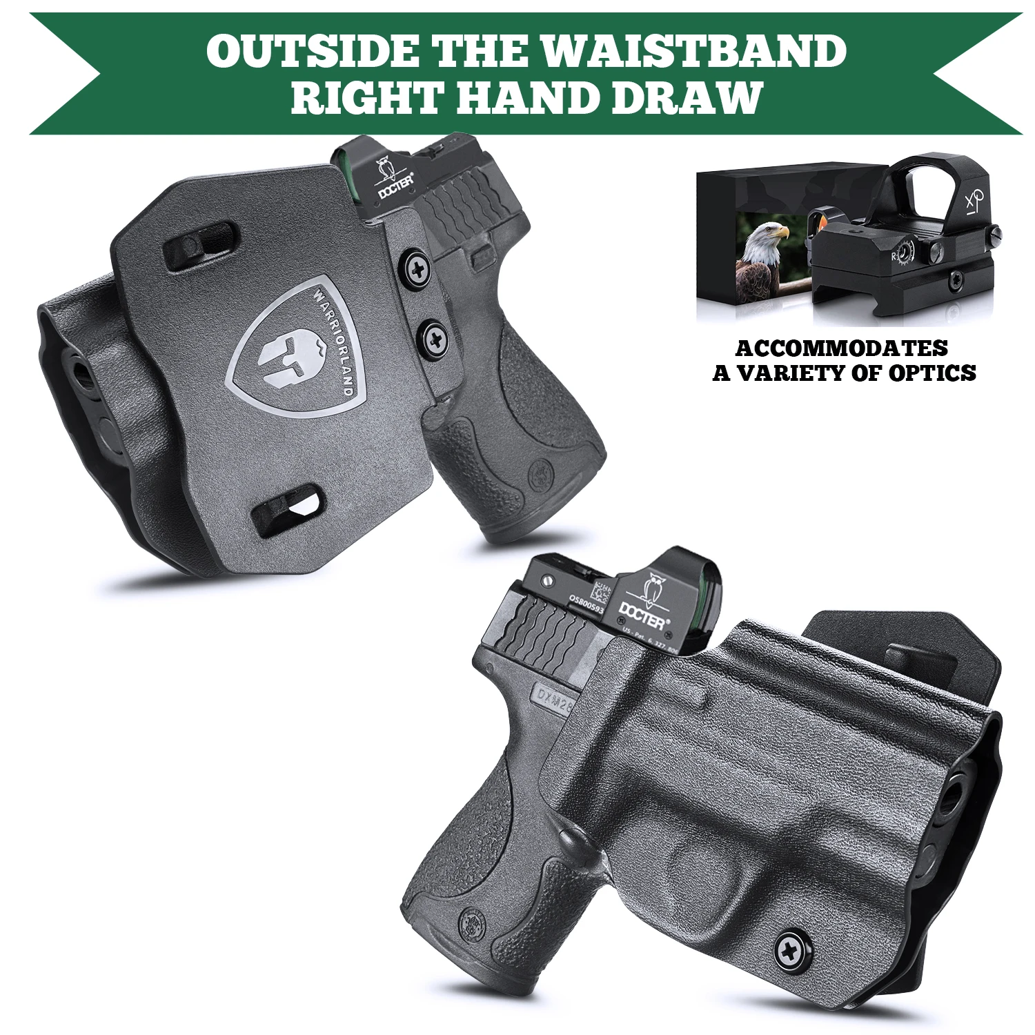 【Corte óptico】 la funda OWB M & P Shield de 9mm acomoda variedad de ópticas, el bozal abierto sobrecortado permite que los barriles roscados pasen por