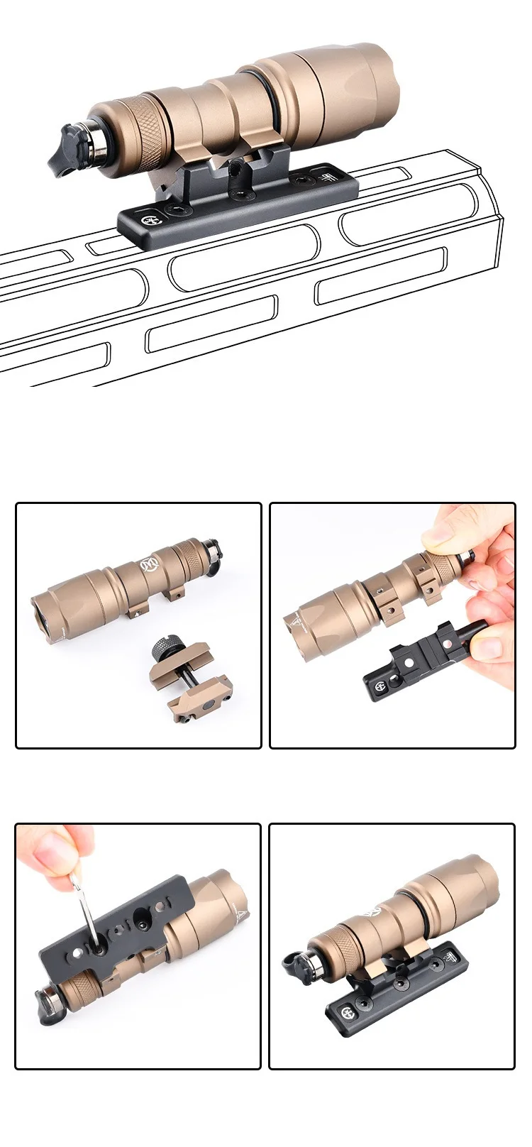 M300 M600B soporte de linterna táctica, Combo de caza, Rifle, explorador, Base de linterna, compatible con Mlok 20mm, rieles Picatinny