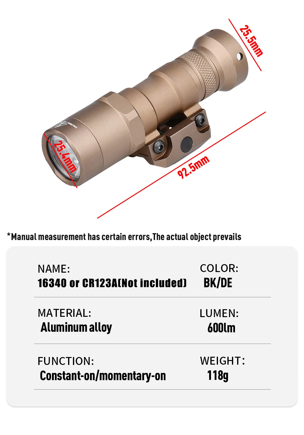 M300B M300, linterna Tacitcal SF, Mini arma de exploración, luz LED de caza, ajuste de 20MM, riel Picatinny, momentáneo, constante, en la cola