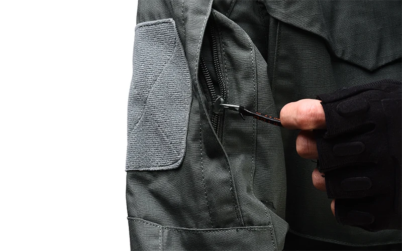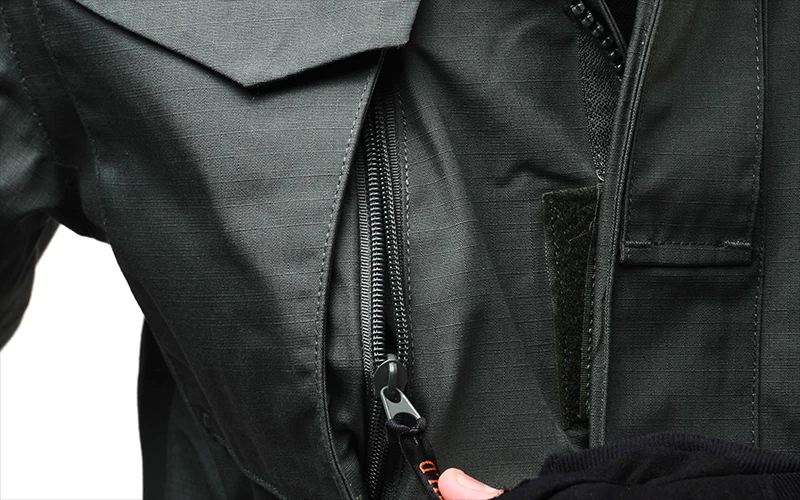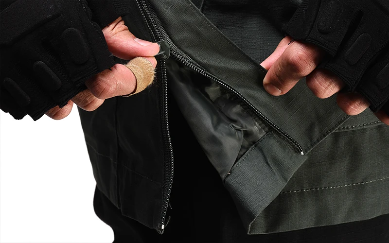 Característica:1. Las tapas se pueden plegar2. Cremallera duradera de alta calidad, suave.3. Cremallera con velcro, doble protección, más resistente al viento5.Cuff velcro, puño ajustable, diseño de ajuste a prueba de viento.6. Cremallera de dobladillo de apertura rápida con hebilla magnética7. Costuras ajustadas, mano de obra exquisita,8. Tejido resistente a la abrasión y a los arañazos,9. Diseño multibolsillo, un total de 10 bolsillos: 6 bolsillos en la parte delantera exterior, 2 bolsillos en las mangas y 2 bolsillos en el interior.10. Almohadilla de codo extra gruesa,11. Cintura ajustable con banda elástica oculta12. Interior de malla transpirable