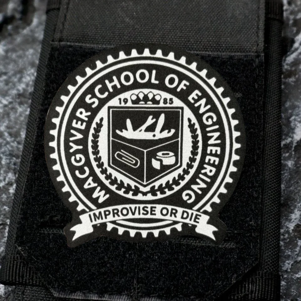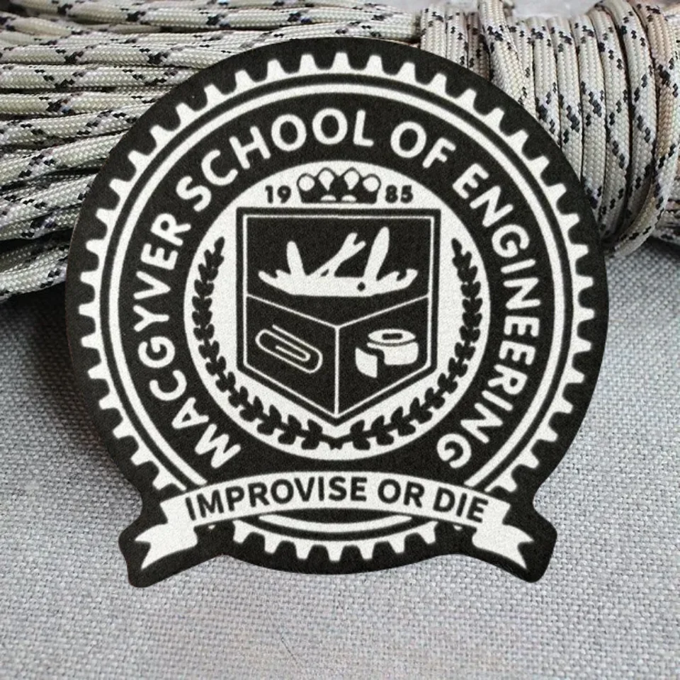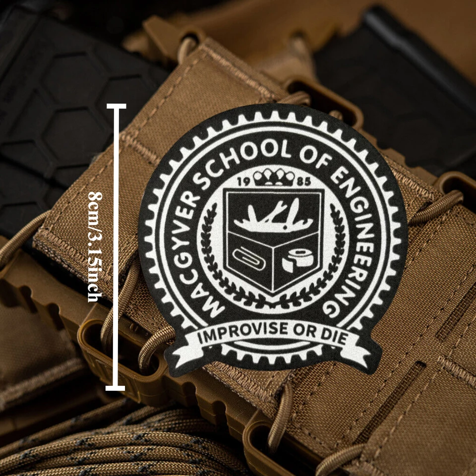 Macgyver escuela de ingeniería moral insignia parche impreso brazalete táctico militar gancho y bucle parche mochila pegatinas