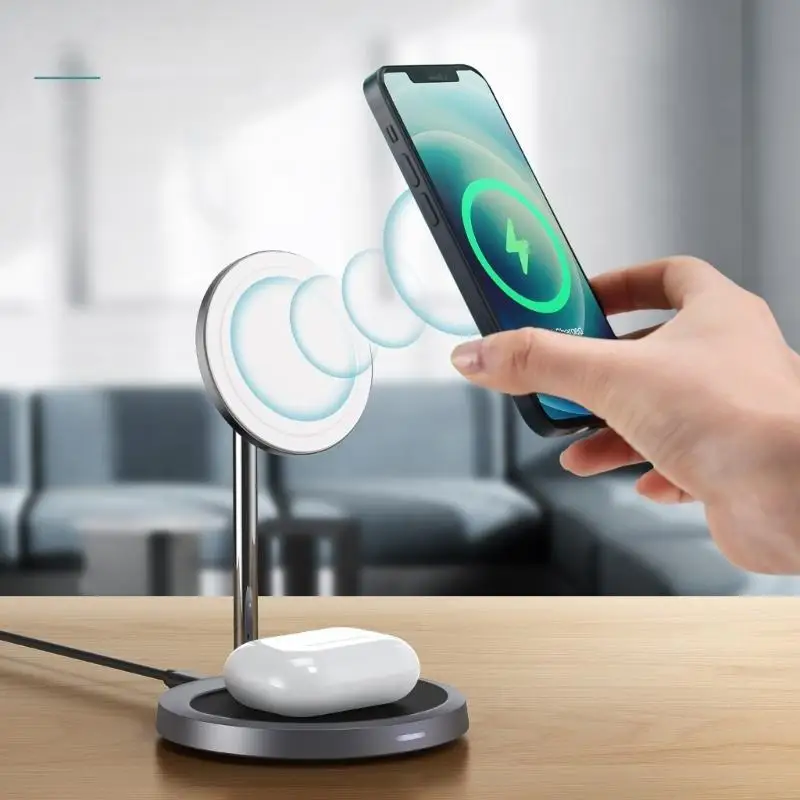 Características:OOTDTYExperimenta una carga rápida simultánea de 15 W para teléfonos compatibles (12 dieciséis series) y una carga de 5 W con estos cargadores inalámbricos 2 en 1, combinando eficiencia con una elegante construcción de aleación de aluminio.