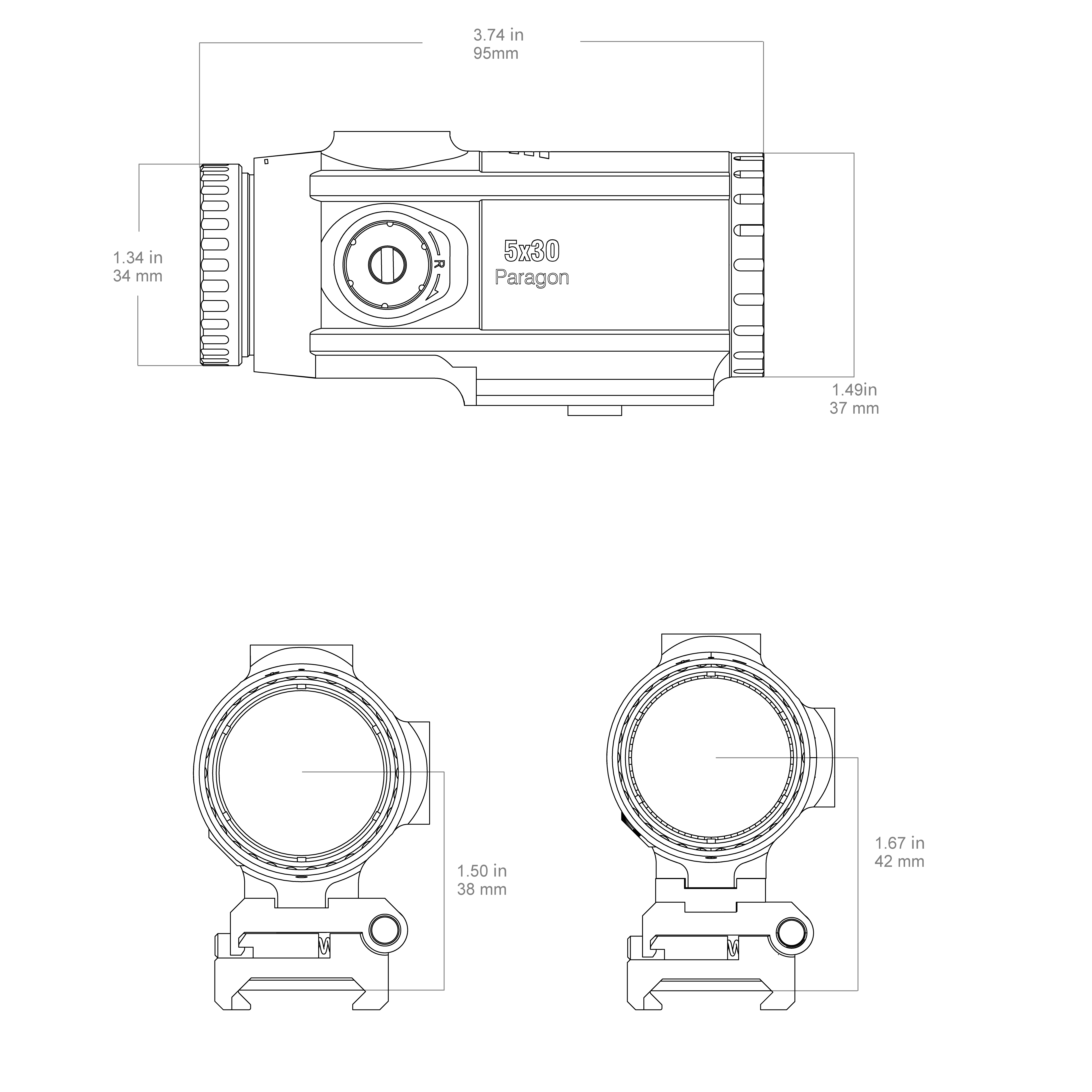 • Montaje incorporado Flip-to-Side Picatinny QD 36mm 1,4 "desde la parte inferior hasta el centro de la vista, Full Metal