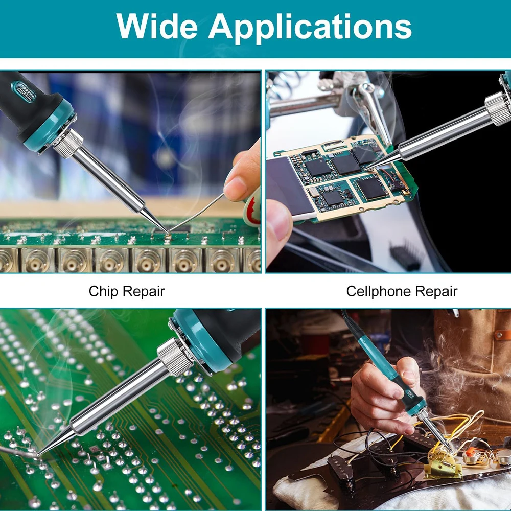 【Temperatura ajustable】 Temperatura del kit de soldador 300-510℃(572-950℉ )se puede ajustar, la velocidad de calentamiento es rápida.Después de encenderlo, presione el botón "+" una vez que la temperatura aumente 10 grados Celsius. Presione el botón "-" una vez que la temperatura sea 10 grados Celsius. Puede configurar el valor deseado para satisfacer sus necesidades de soldadura.