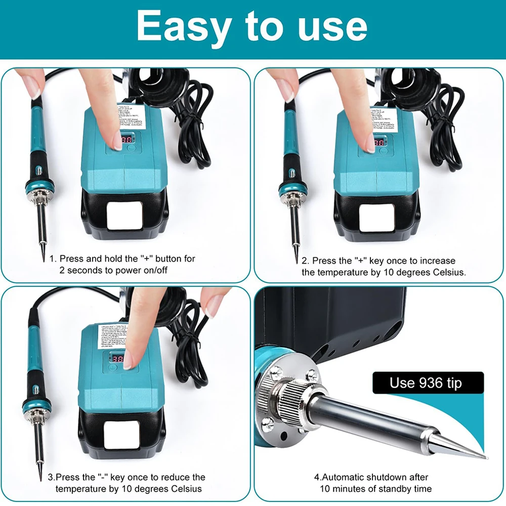 Batería compatible: la potencia de la estación de soldadura es de 60 W y es compatible con baterías bl de Makita de 18 V, como: baterías BL1830 BL1840 BL1850 BL1860 BL1840B BL1850B BL1860B BL1820..La batería de 4,0 Ah dura aproximadamente 6 horas.La batería de 3,0 Ah dura aproximadamente 4,5 horas.La batería de 2,0 Ah dura aproximadamente 3 horas. La batería de 1,5 Ah dura aproximadamente 1,5 horas.
