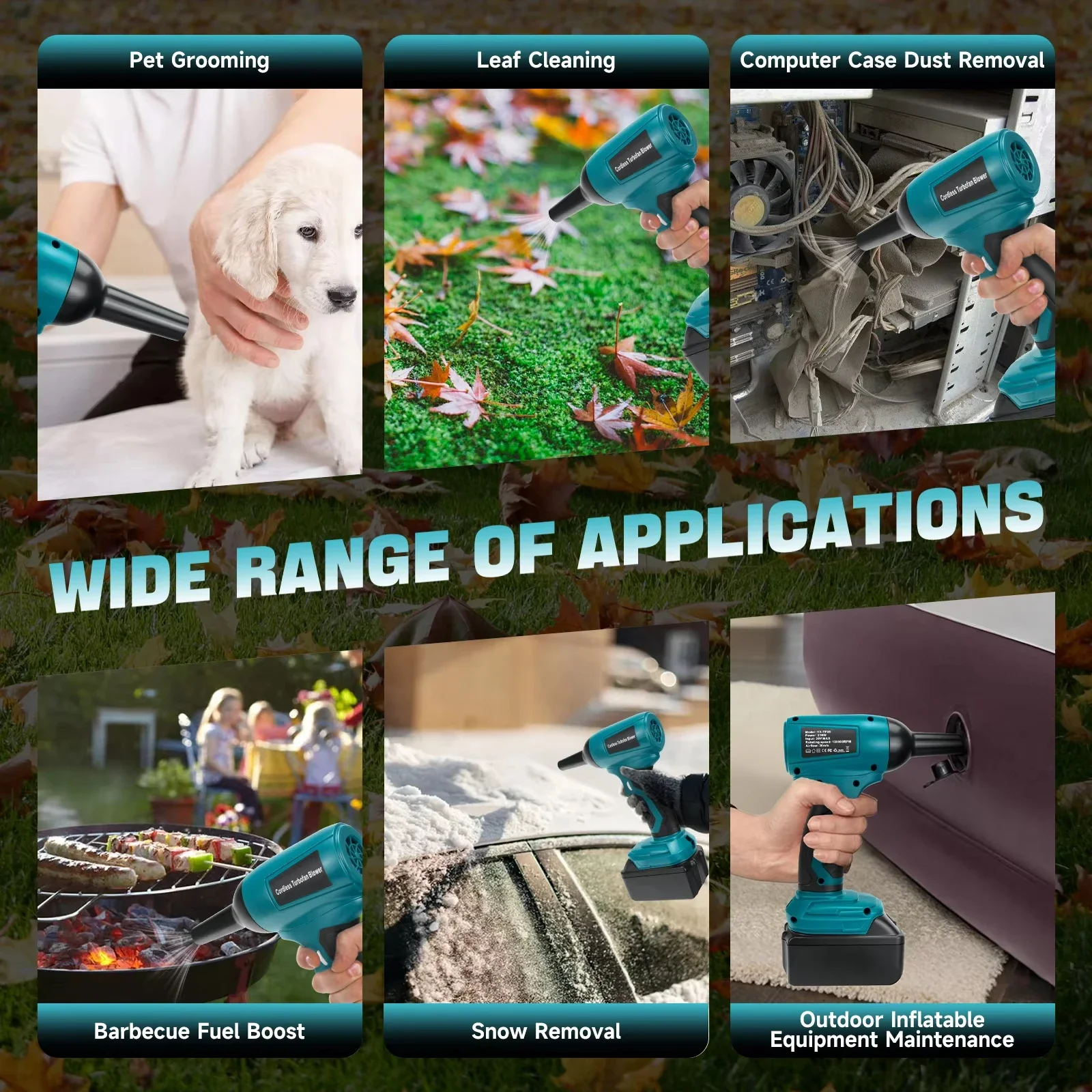 【Mini soplador de aire inalámbrico】Compacto y liviano, este ventilador de mano inalámbrico está diseñado para ser portátil.Es una herramienta versátil adecuada para espacios reducidos, que incluye eliminar residuos de carbono, polvo industrial, hollín, limpieza de teclados, automóviles, motocicletas, consolas, grietas, tapetes para los pies e incluso basura para picnic.