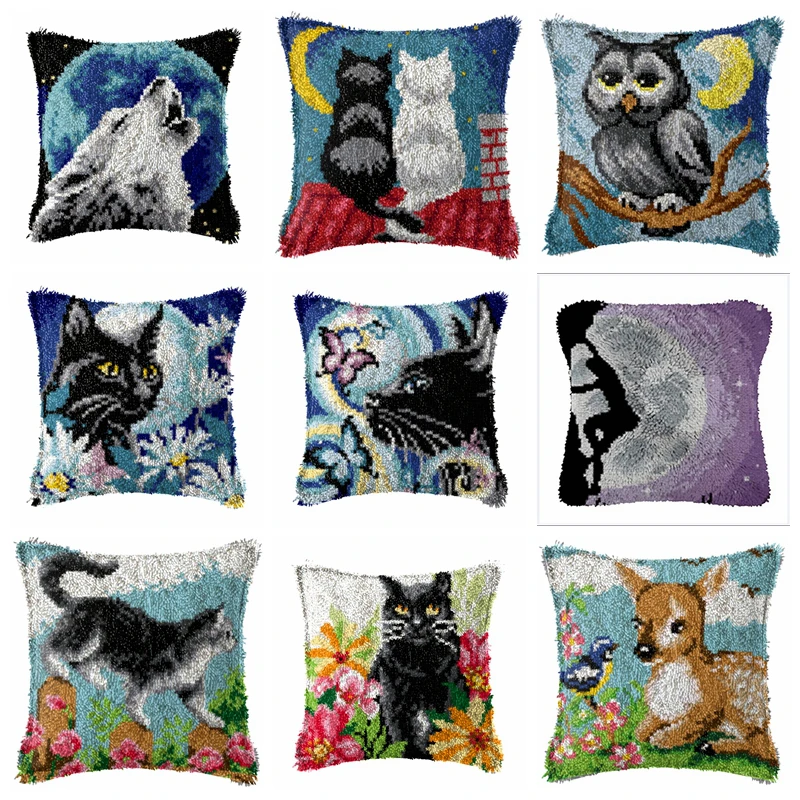 Malla de plástico de animales para hacer bolsas, Kit de gancho de pestillo para perro y gato, alfombras, conjunto de bordado, Kit de bordado, almohada de punto de cruz