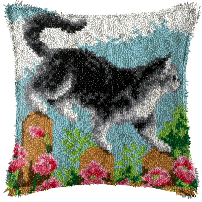 Malla de plástico de animales para hacer bolsas, Kits de ganchos de pestillo para perros y gatos, alfombras, juego de bordado, Kit de bordado, almohada de punto de cruz