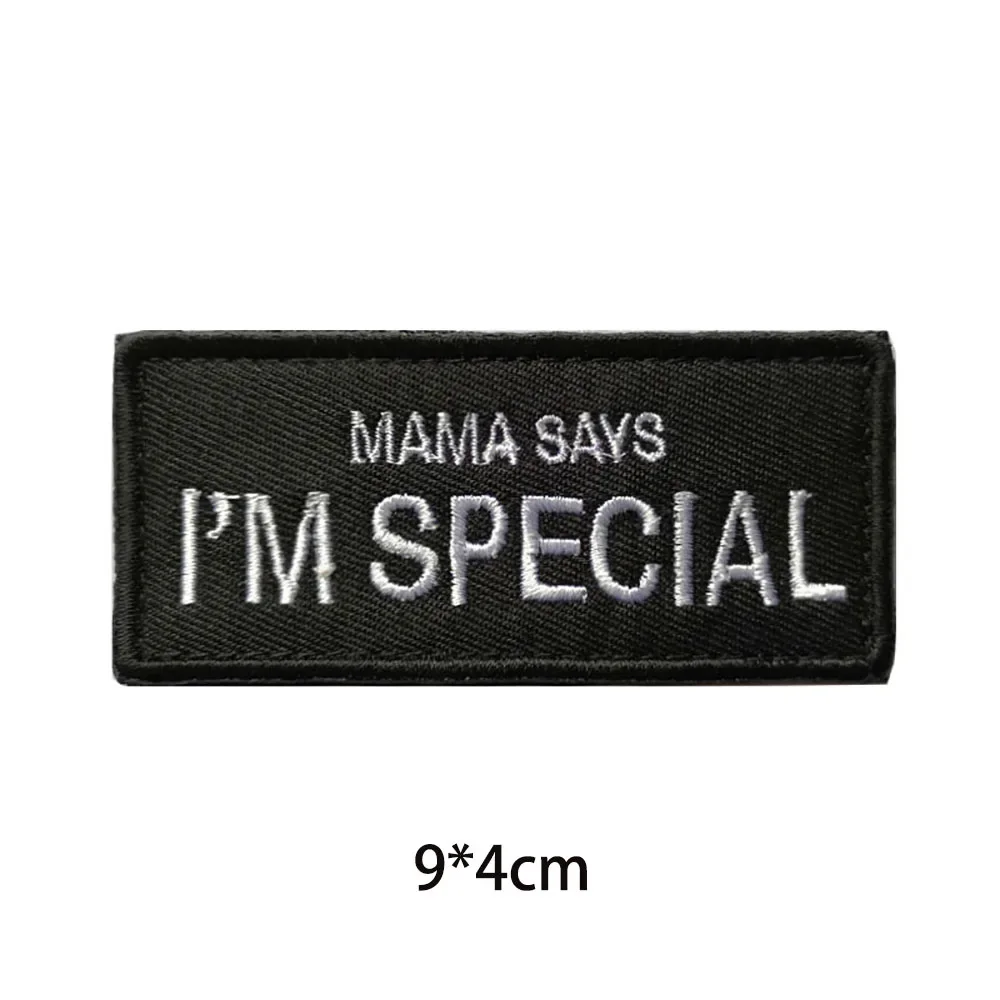 Mama Says Im Special Patch Russian Embroidery Tactical Morale Patches for Clothing Backpack Badge Hook&Loop Appliques StickersDescription: