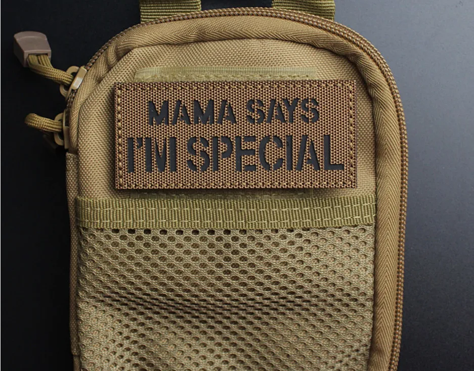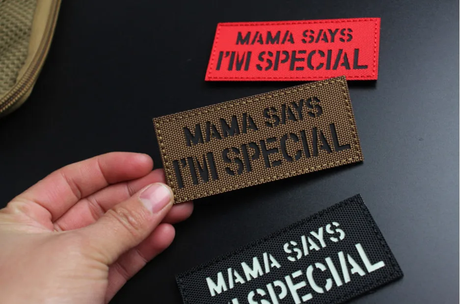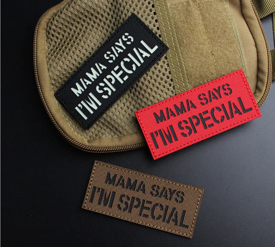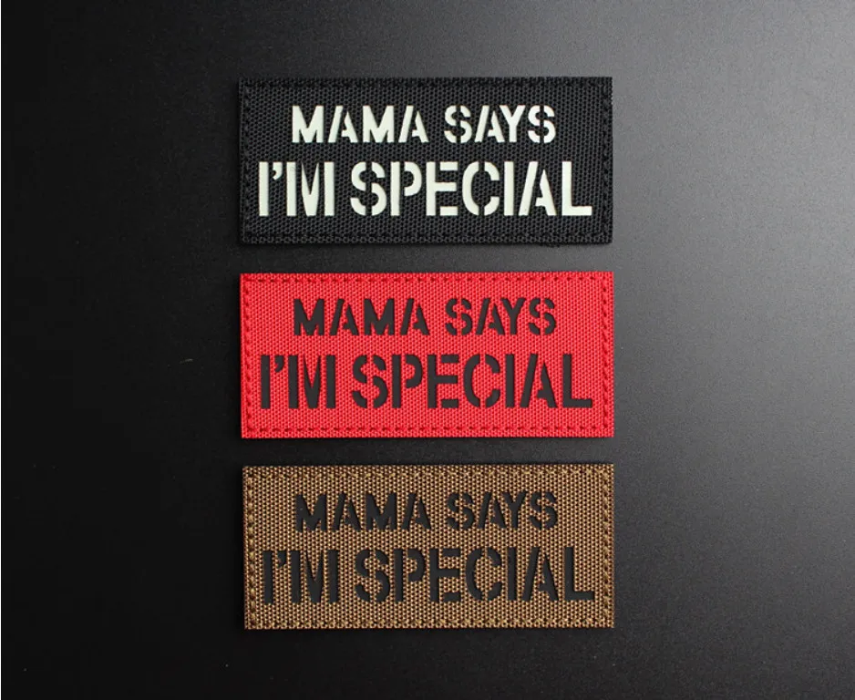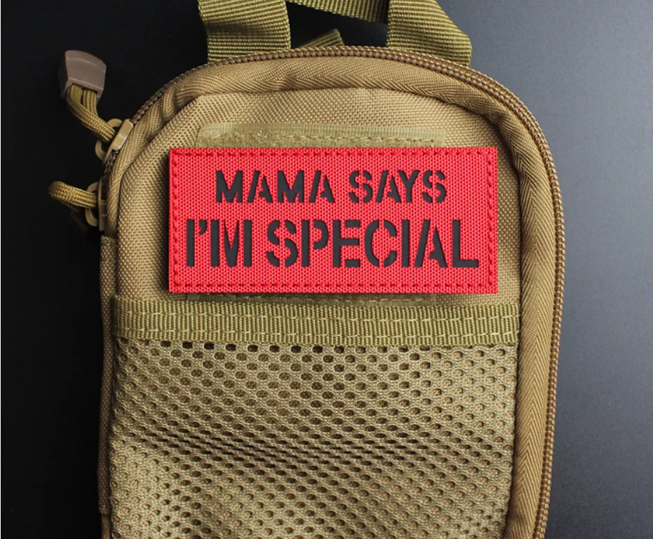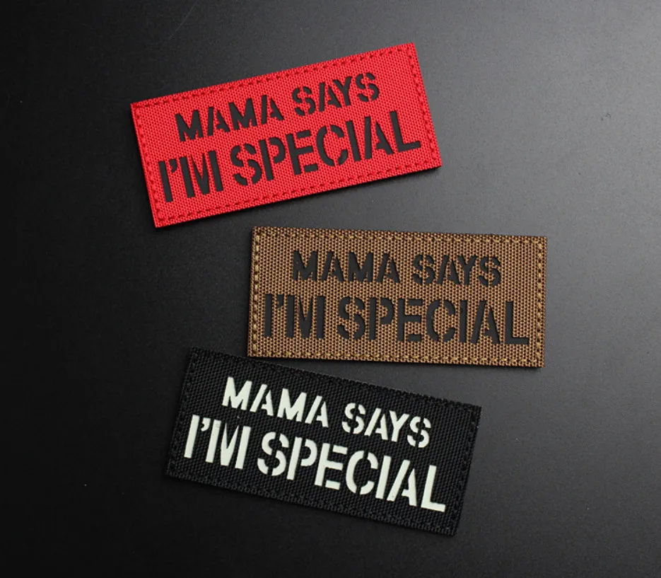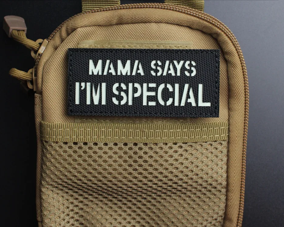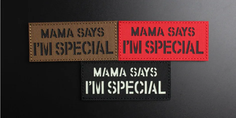 MAMA SAYS I'M SPECIAL parches tácticos de nailon insignias luminosas reflectantes IR para decoración de mochila de ropa