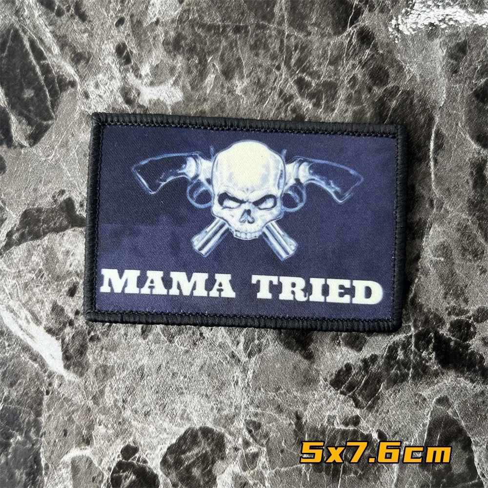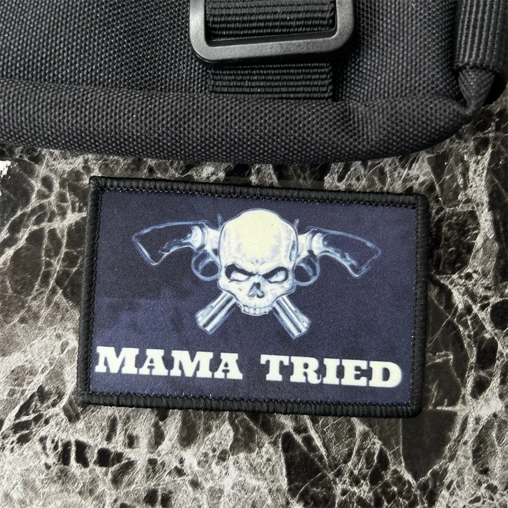 Mama Tried Dual Gun Skull Moral Insignia Parches Brazalete táctico Mochila Pegatinas impresas
