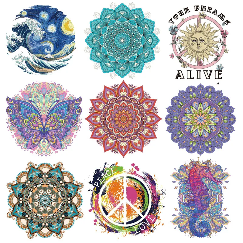 Mandala para planchar en las transferencias de calor, pegatinas térmicas de vinilo caliente, transferencia de calor por planchado, parches lavables A nivel