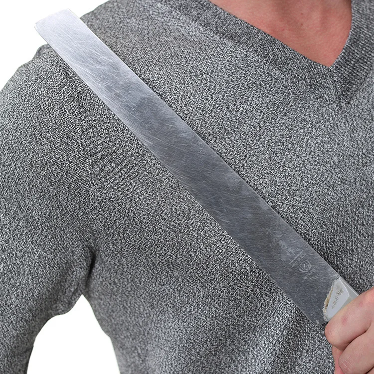 En la investigación y desarrollo de Sanitfabric® , nuestro equipo técnico ajusta la densidad del hilo, el gramo del hilo y el recuento de hilo para lograr el tejido Sanitfabric® final.Y nuestro producto puede alcanzar EN388: Nivel 5 resistente a Cortes (el mejor); nivel 4 de resistencia al desgarro (el mejor); nivel 4 de punción (el mejor),Que puede reducir significativamente las lesiones por corte del cuchillo para cortar, picadora, cuchillo para frutas en nuestra vida diaria, también en la vida laboral, como el procesamiento de moldes, procesamiento de registro, procesamiento de vidrio, etc. El nivel de corte inferior o superior están disponibles. Depende del alto rendimiento de la patente SanitFabirc®, la aplicamos a áreas de protección más especiales, como guantes de seguridad anticorte con alto nivel de resistencia a los cortes sin fibra de vidrio, delantal anticorte con amplia aplicación en áreas comerciales e industriales, ropa antipuñaladas utilizada en la vida diaria, etc.