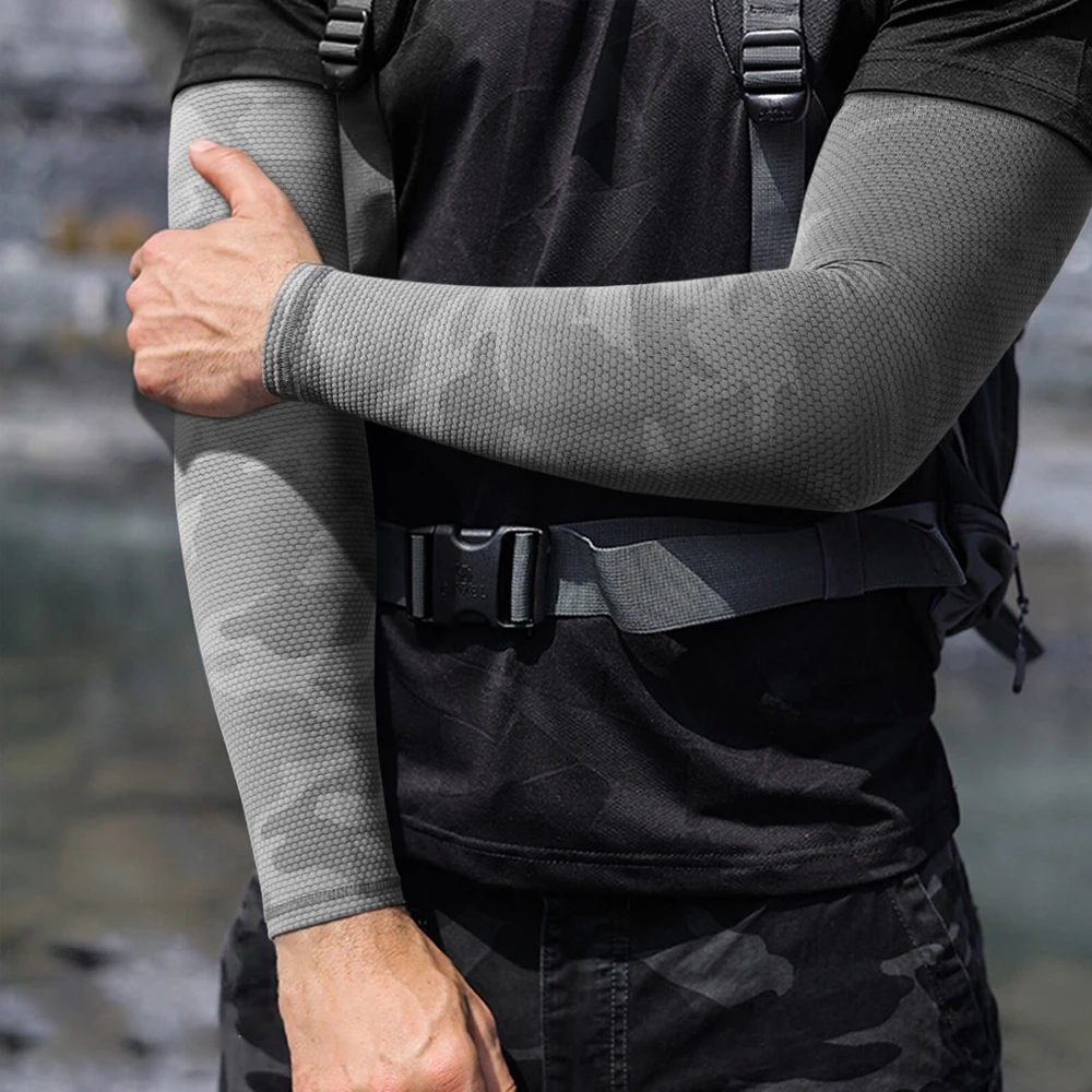 Esta es nuestra manga de brazo con sensor de hielo, que absorbe la humedad, es transpirable y de secado rápido. No solo protege del sol, sino que también se siente fresco y cómodo en ambientes calurosos.