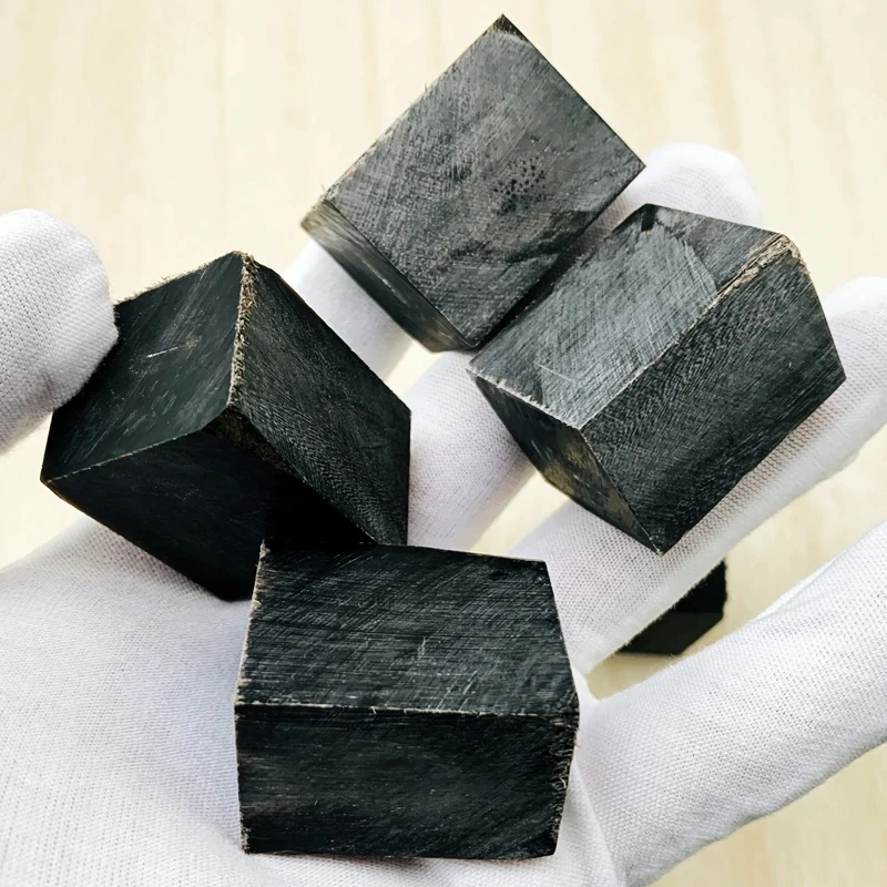 Mango de cuchillo de cuerno de Búfalo, Material sólido 30x27x23mm, cuerno de búfalo negro Natural, materia prima para cuchillo de cocina, Material protector de mano