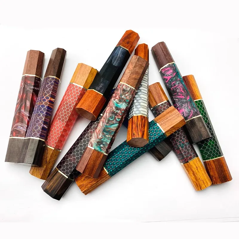 Mangos octogonales de madera de caoba para cuchillos de cocina, accesorio con diseño de panal de resina, piel de serpiente, estilo japonés, 11 tipos pequeños