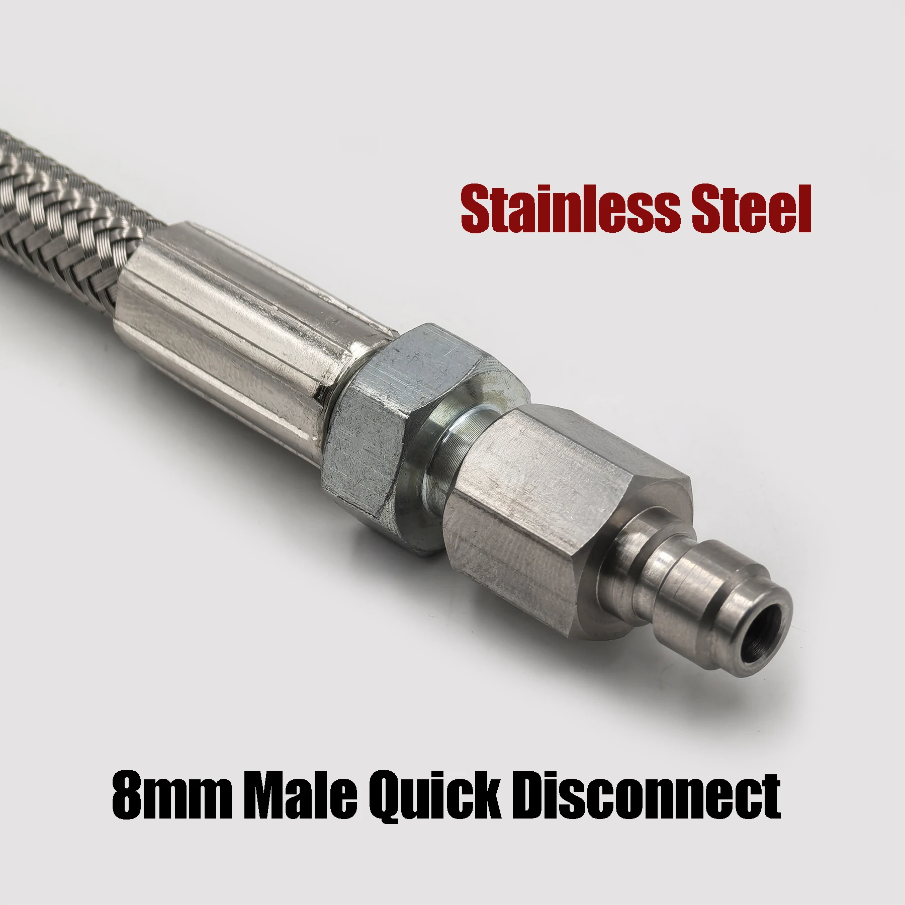 Manguera de carga de látigo de llenado de alta presión, extensión de tubo largo remoto, conector rápido de 8mm de extremo hembra y macho de acero inoxidable