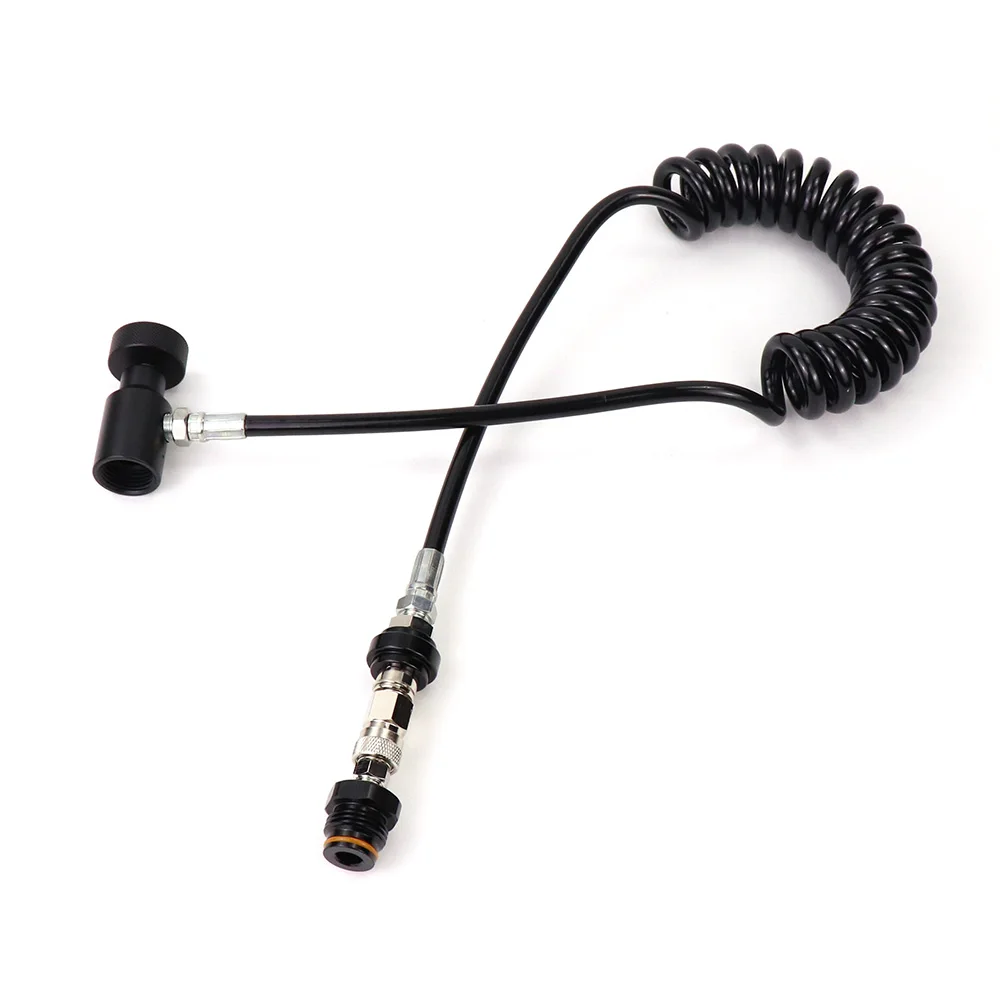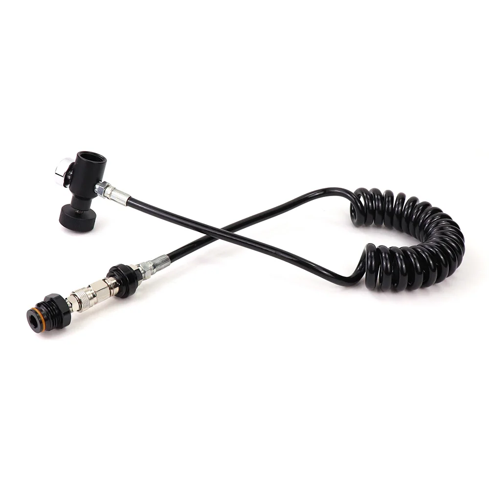 La manguera remota en espiral le permitirá poner el tanque en su espalda, dándole más libertad para moverse sin que el tanque se interponga en el camino.