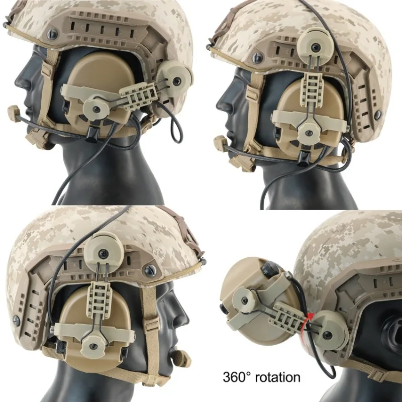 Este adaptador de riel para casco ARC puede girar 360° y puede moverse hacia arriba y hacia abajo.La posición de la tarjeta del soporte del auricular también se puede girar.La longitud del soporte también se puede ajustar.
