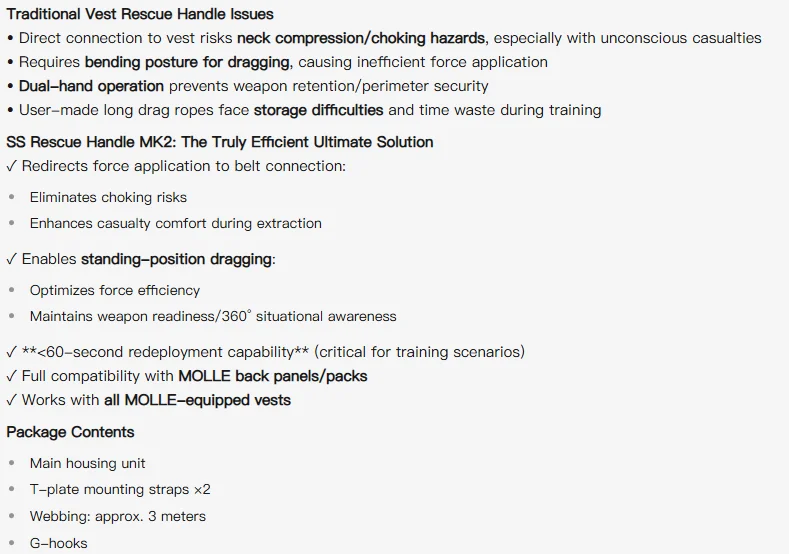 Manija de rescate SS MK2: sistema de correa de extracción y manija de arrastre específica LV119