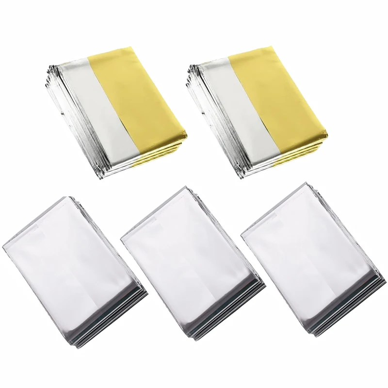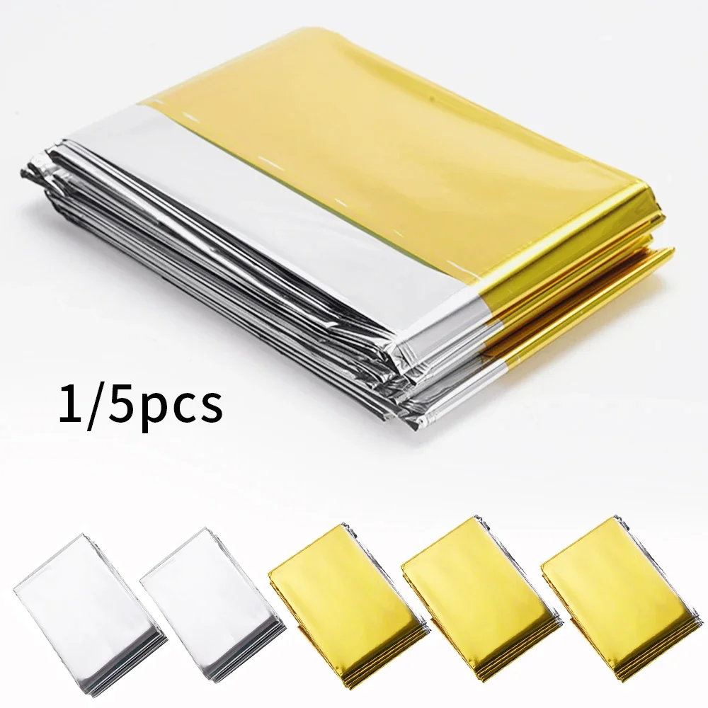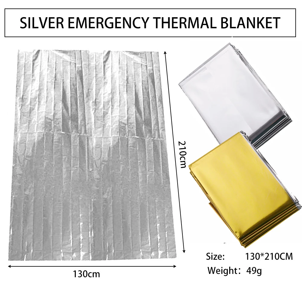 Manta de emergencia dorada y plateada de 130x210cm, aislamiento térmico salvavidas, protector solar, mantas de rescate de supervivencia, Kit de equipo de Camping