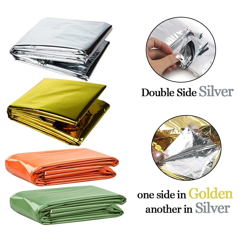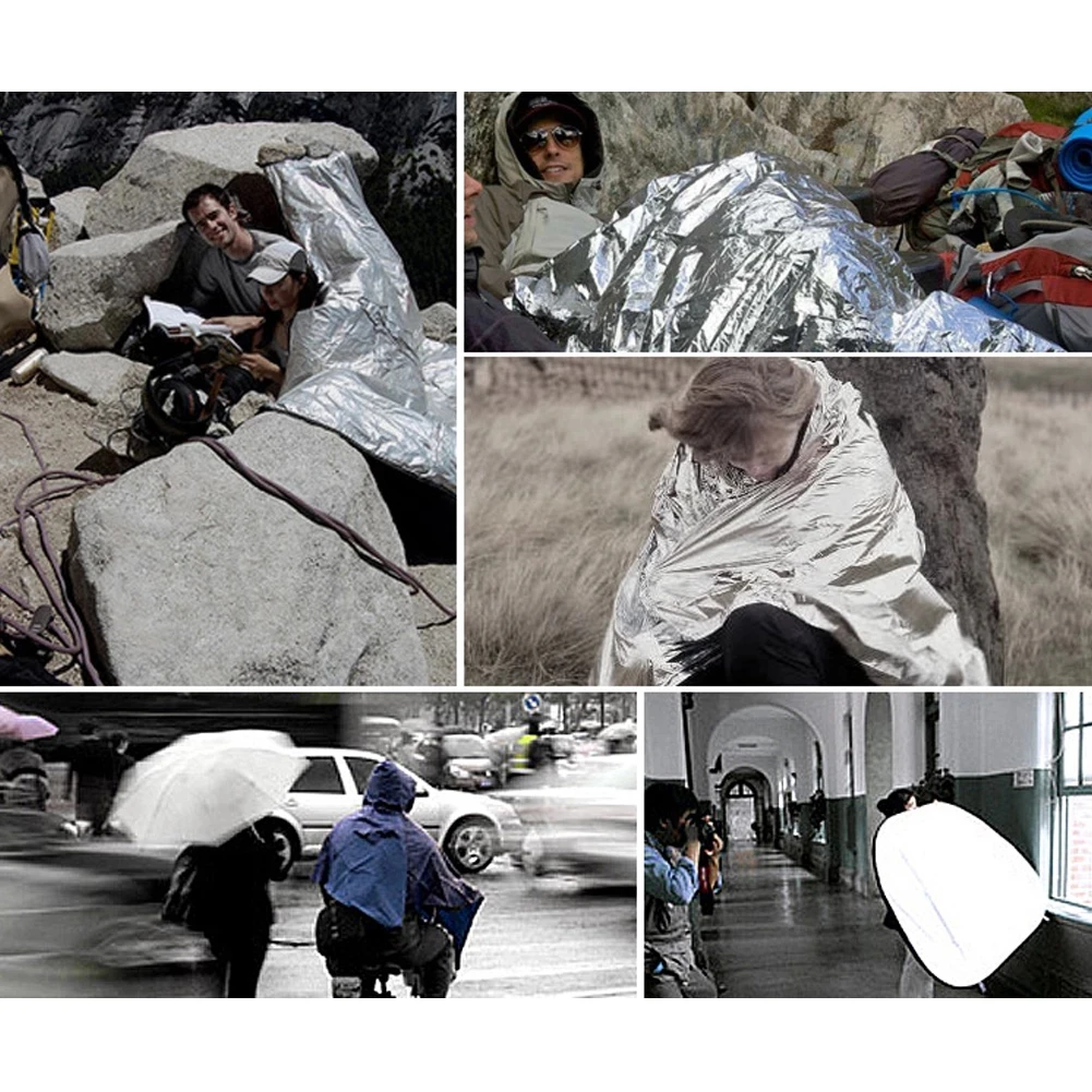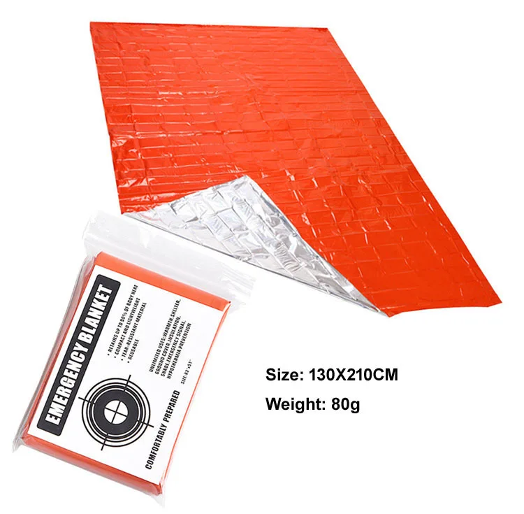 Manta de emergencia plegable para supervivencia al aire libre, manta térmica de primeros auxilios, a prueba de viento, mantiene el calor, para acampar y hacer senderismo