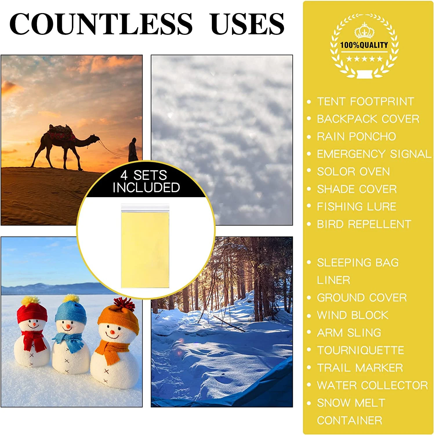 4. Cuando se utiliza en ambientes de baja temperatura, puede mantener el 80% de su propio calor para no ser emitido, y el fuerte reflejo hace que sea más fácil para el personal de rescate encontrarlo, que en realidad es una herramienta de supervivencia en la naturaleza.