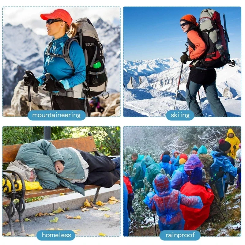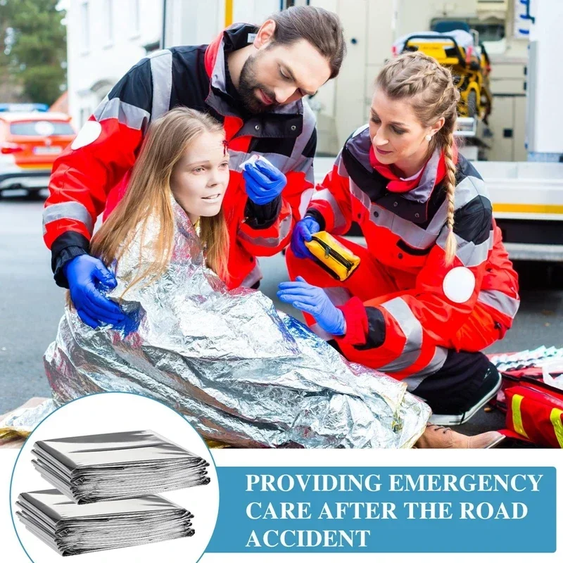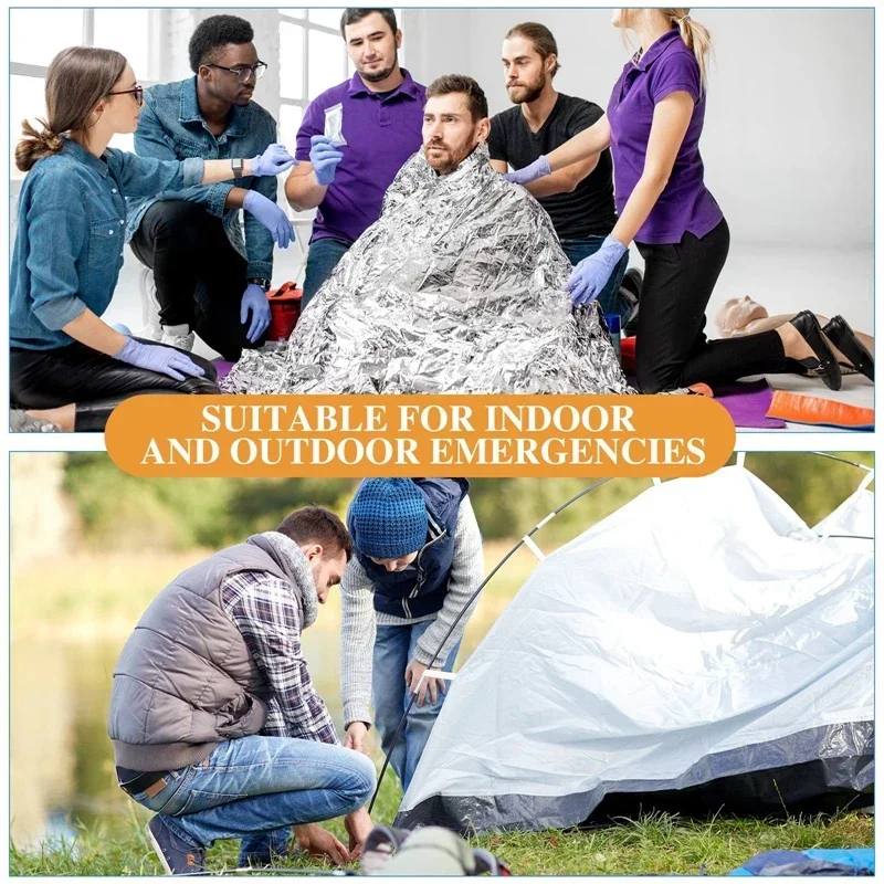 Las mantas de emergencia protegen tu cuerpo del calor y el frío.Las mantas son impermeables, resistentes al viento y a la humedad, lo que ayuda a mantenerte seco en ambientes húmedos, mojados, lluviosos y con mucho frío.