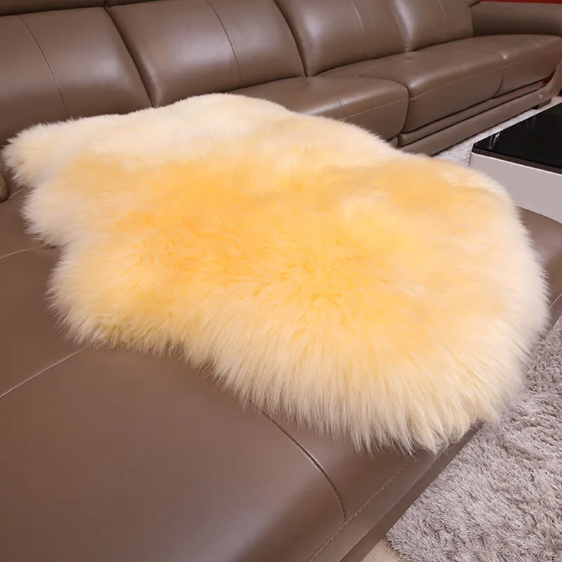 Mantas de lana de piel de oveja pura para acampar, edredón de invierno, juego de ropa de cama de oveja cálida para exteriores, mantas de lujo Beige y amarillo