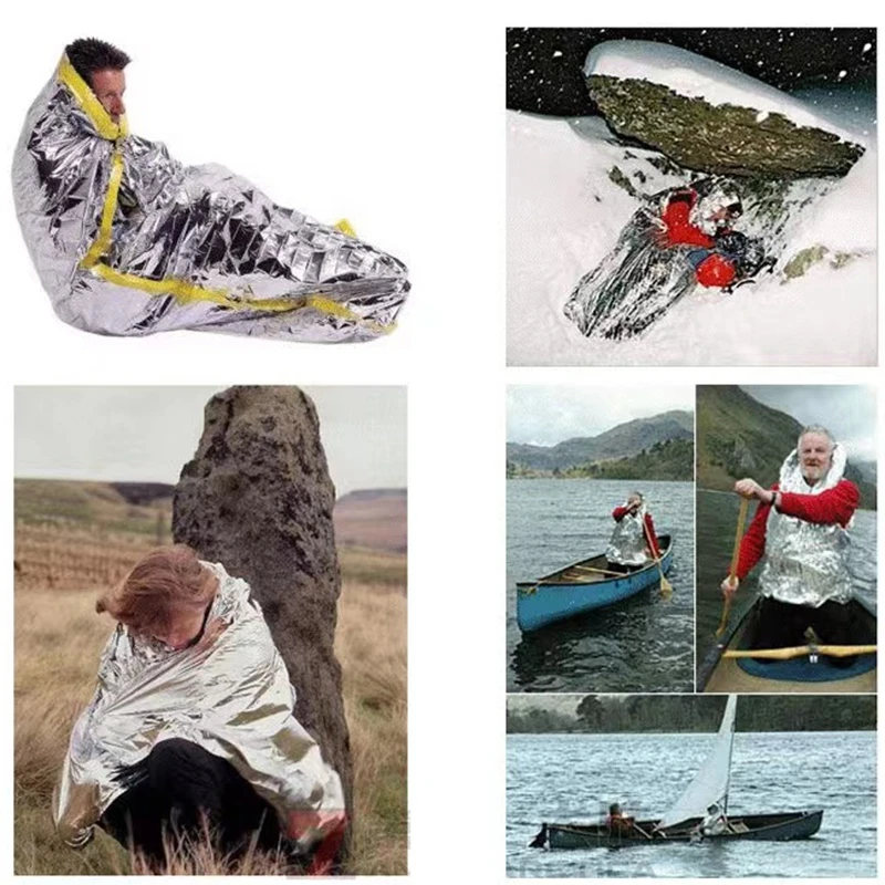 Hecho de lámina de Mylar, que está diseñada para retener hasta un 90% de calor corporal y para proteger todas las condiciones climáticas.