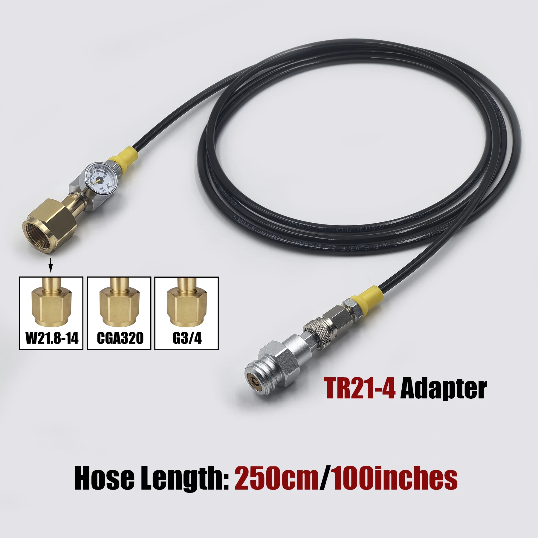 6.Este artículo se utiliza para máquinas/fabricadoras de agua con gas a tanques externos/conectaduras de ciclistas.Como tanques de CO2 comerciales de 5LB, 20LB o 50LB.Permite la rosca externa del conector de la válvula del tanque/cíclímetros W21.8-14 o G3/4 o CGA320.