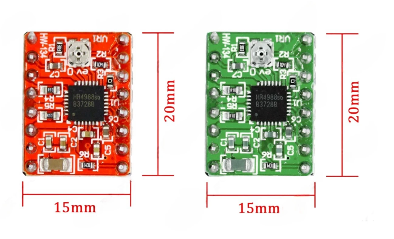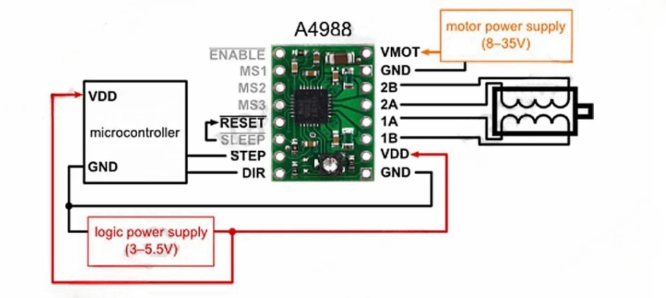 Este producto es una placa de conexión para el controlador de micropasos DMOS A4988 de Allegro con traductor y protección contra sobrecorriente;Lea atentamente la hoja de datos A4988 antes de usar este producto. Este controlador de motor paso a paso le permite operar motores paso a paso bipolares en modos completo, medio, cuarto, octavo y secisimo paso, con una capacidad de accionamiento de salida de hasta 35 V y 2 A.