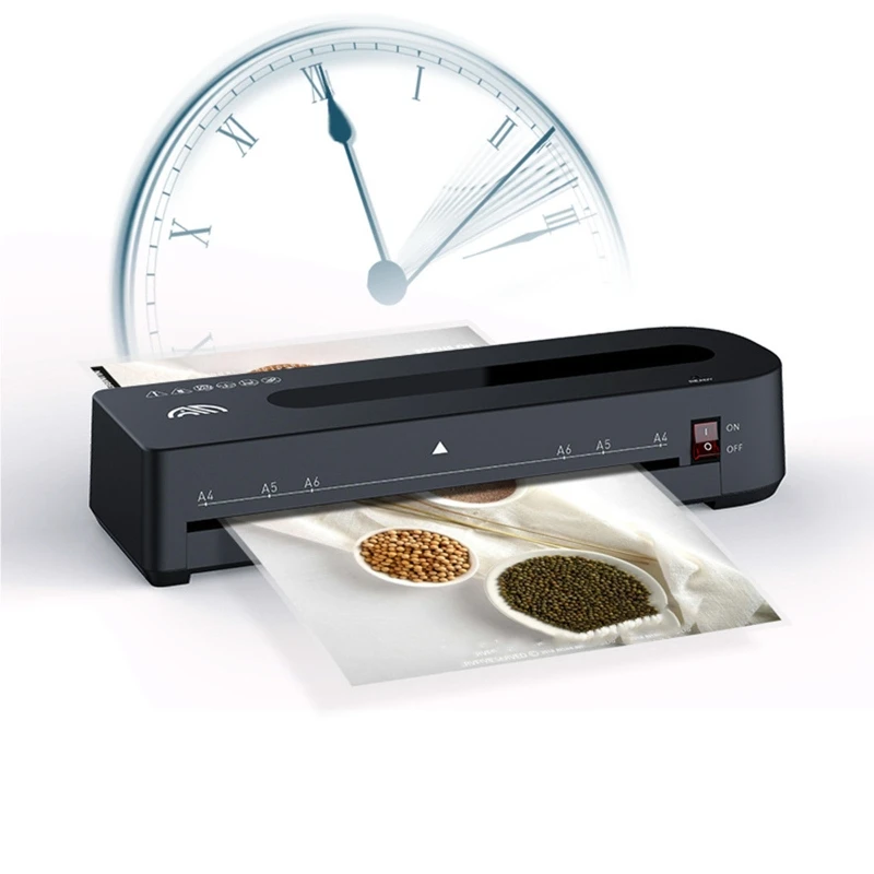 La máquina laminadora es de tamaño A4 de ancho y puede usar bolsas térmicas de 3-5 mils de espesor, de hasta 9 pulgadas de ancho; la temperatura máxima de trabajo es de 125 ℃, y el sistema de apagado automático puede evitar el sobrecalentamiento.