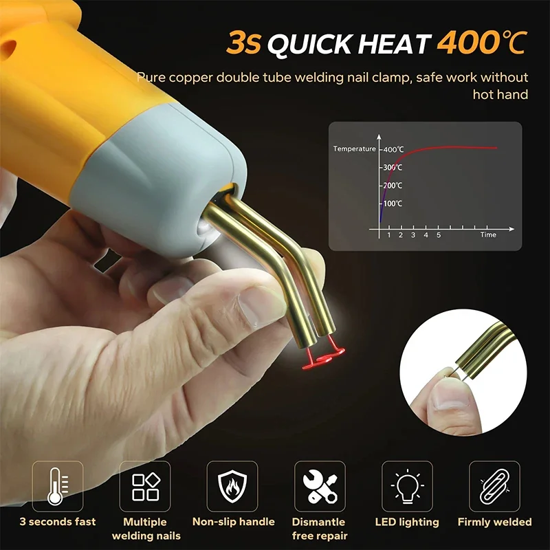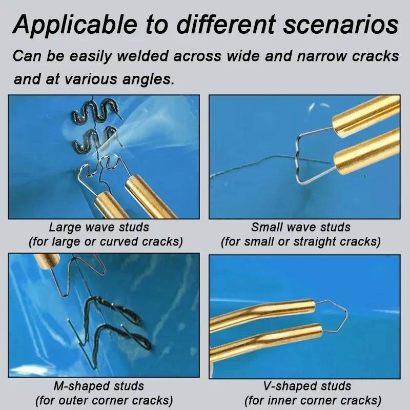 5.Amplia gama de aplicaciones: soldadura de plástico, soldadura de materiales de relleno, reparación de orificios, eliminación de espacios.Con una variedad de clavos de reparación, adecuados para reparar grietas horizontales, verticales, largas y cortas.Después de la restauración, tiene fuertes capacidades antisísmicas y antitorsión.