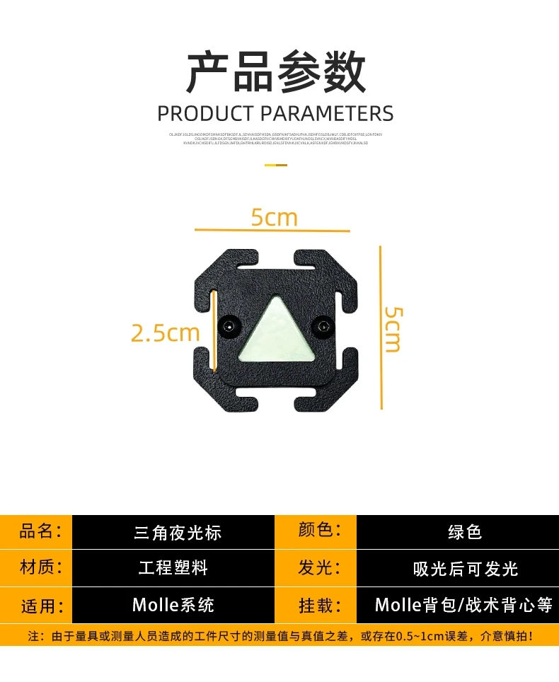 Marcador luminoso triangular, tira luminosa Molle, mochila táctica para exteriores, accesorios de montaje, función de sello de identificación del viento