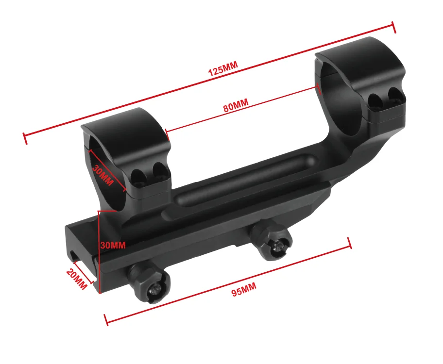 Pienso:Se adapta al tubo del visor de 30 mm de diámetro.Montado en riel de cola de milano de 20 mm.TAMAÑO:Color negroMaterial: AluminioLongitud: 125 mmDiámetro del anillo interior: 30 mmDiámetro del anillo exterior: 30 mm.Tamaño del riel: 20 mmPeso: 170 gEl paquete incluye: