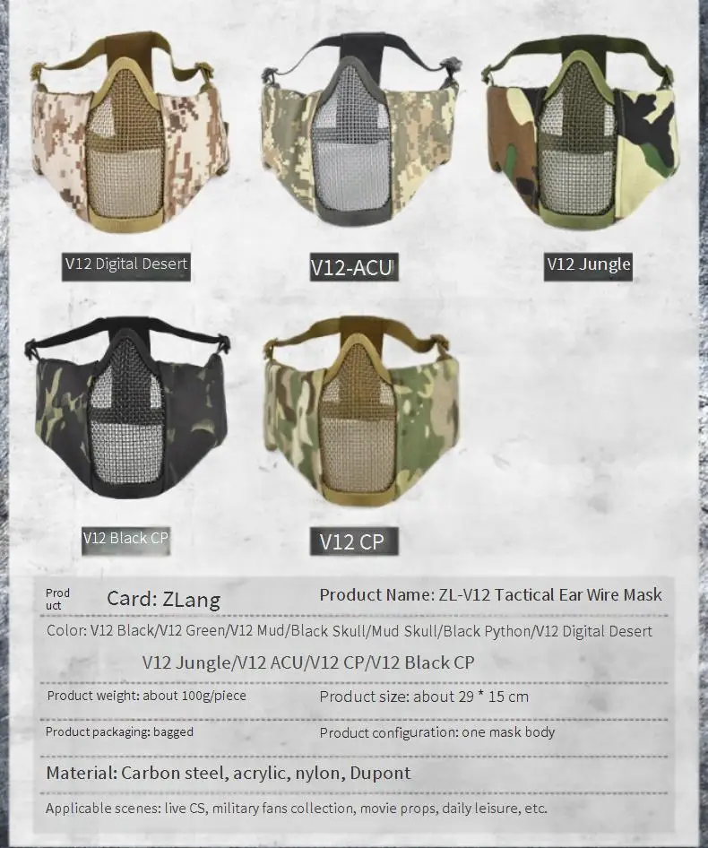 Máscara de acero táctica del protector de oído de la media cara transpirable para la conducción al aire libre