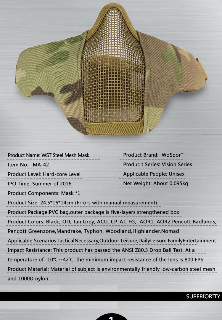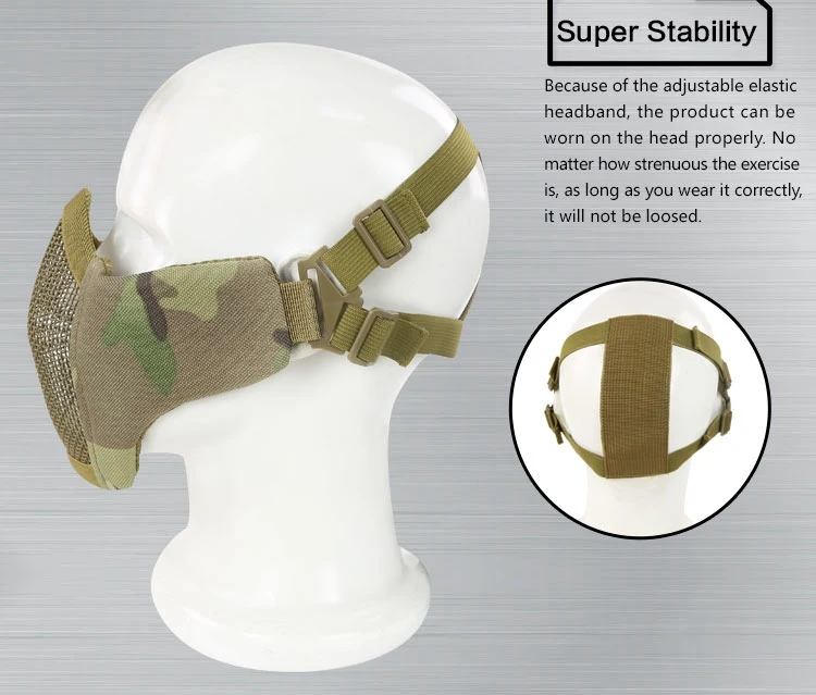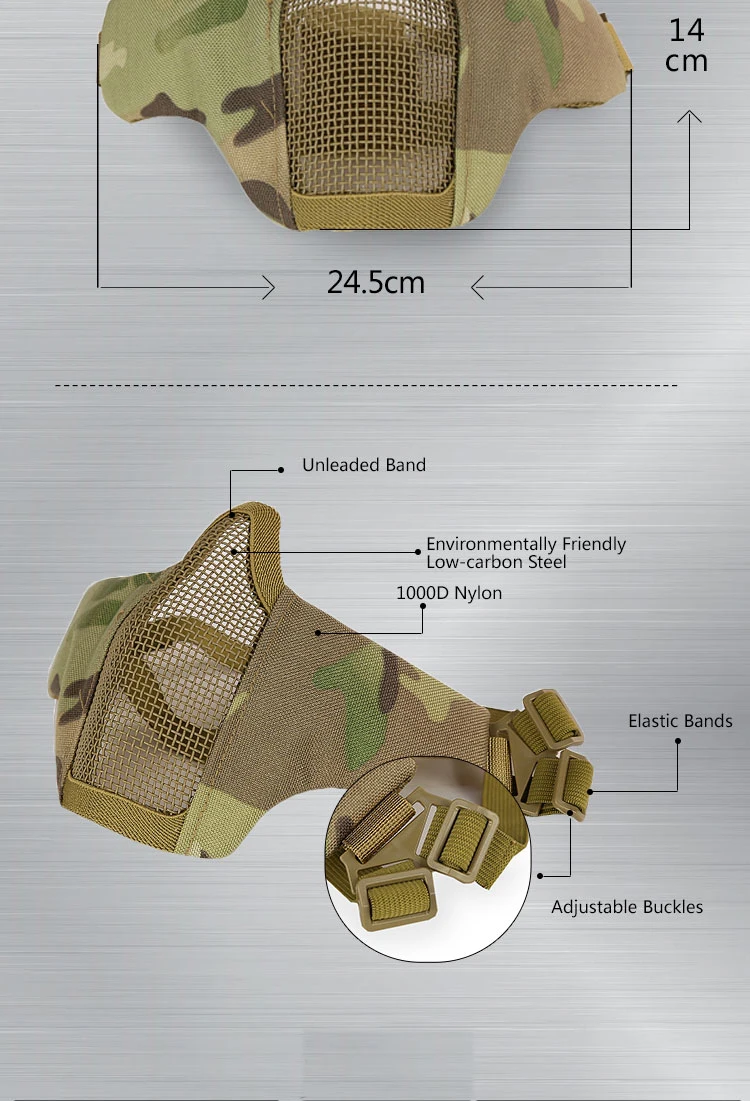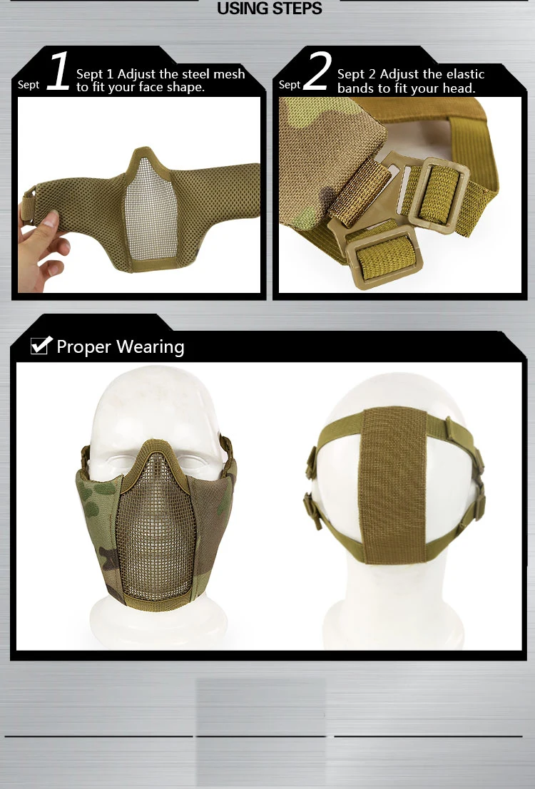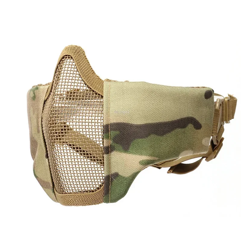 Máscara táctica Airsoft, media cara inferior, red de acero metálica, máscara táctica de acero para exteriores de campo